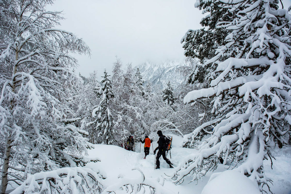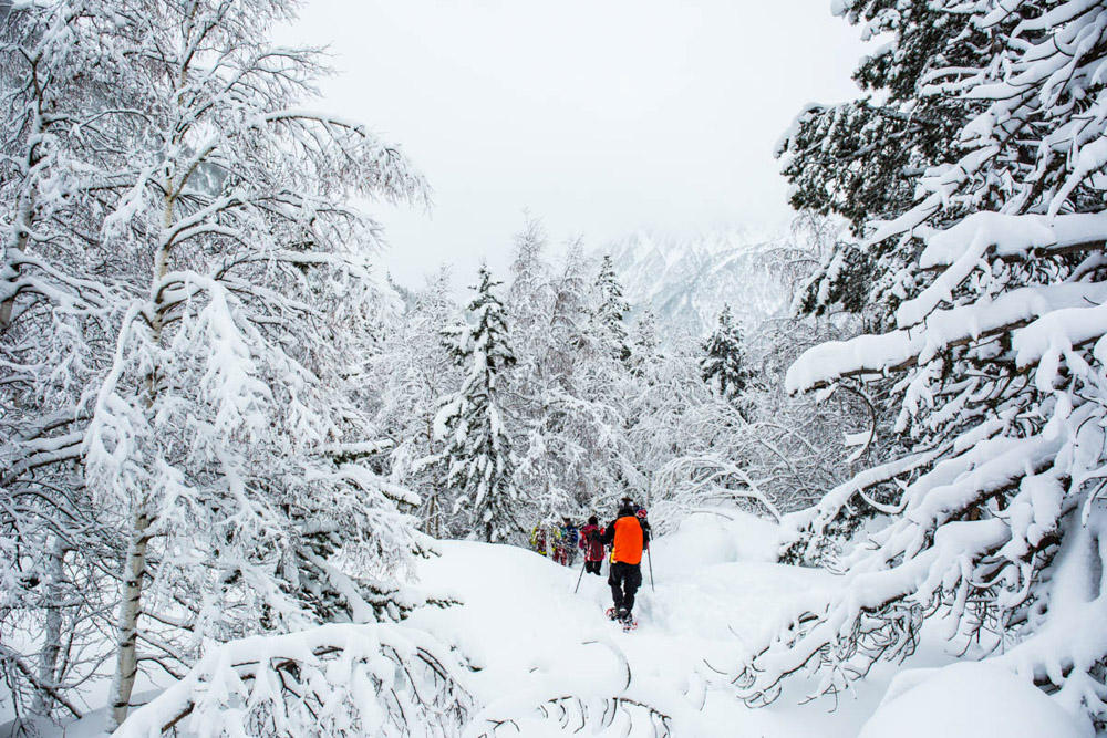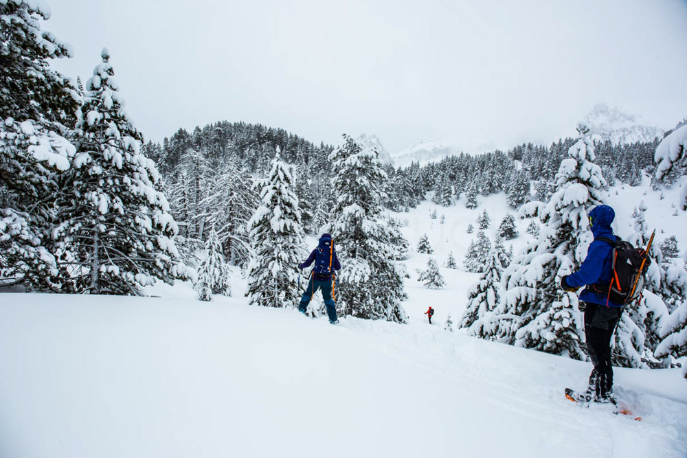 Vamos bajando y disfrutando del bosque con las raquetas, gozando de la nieve virgen. Una pasada. Al final regresamos al centro.