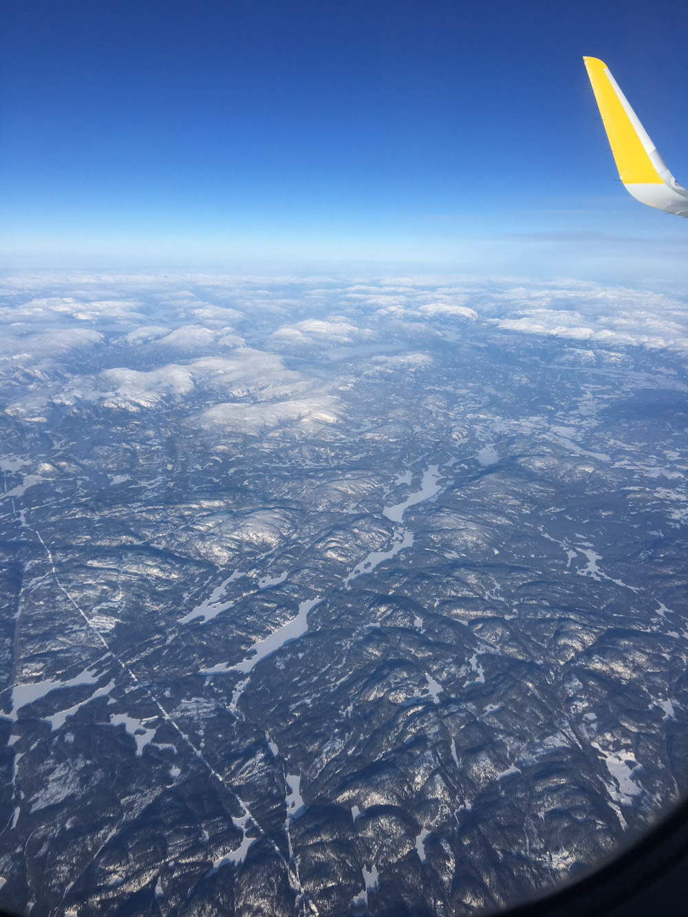 Vuelo tranquilo de Barcelona a Oslo. Desde el avión vemos el paisaje totalmente blanco, aterrizamos en Oslo sin problemas.