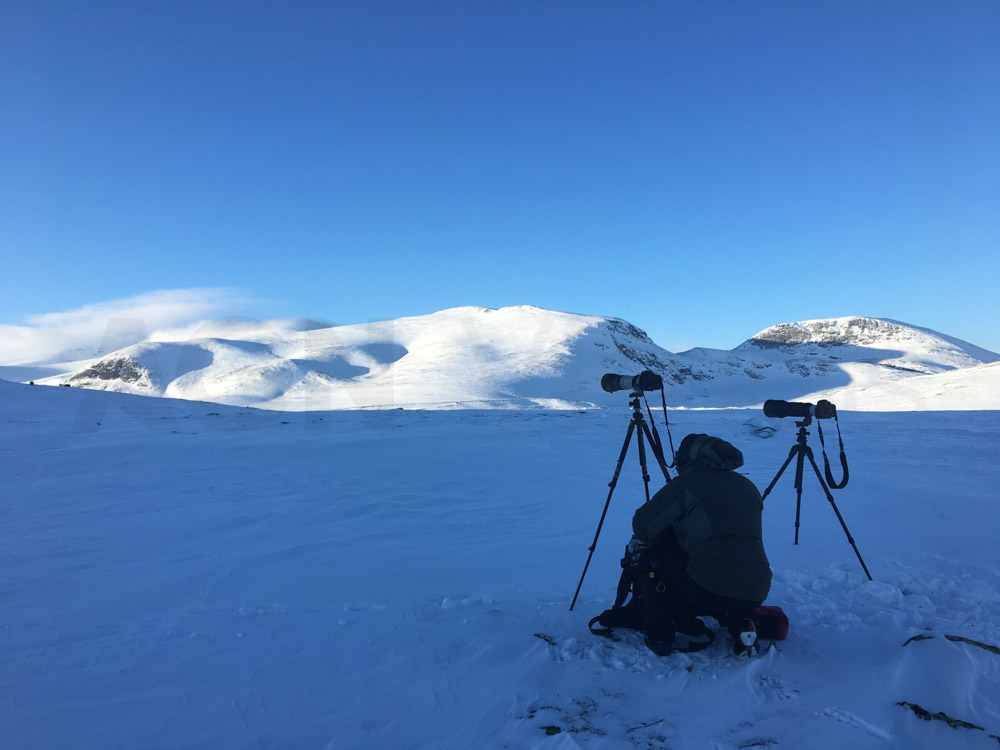 Sacamos todo el equipo fotográfico con los trípodes y los teleobjetivos. Hacemos fotos y videos de estos fantásticos animales. Los observamos y alucinamos con cómo se mueven por la nieve y cómo el viento mueve sus largos pelos.