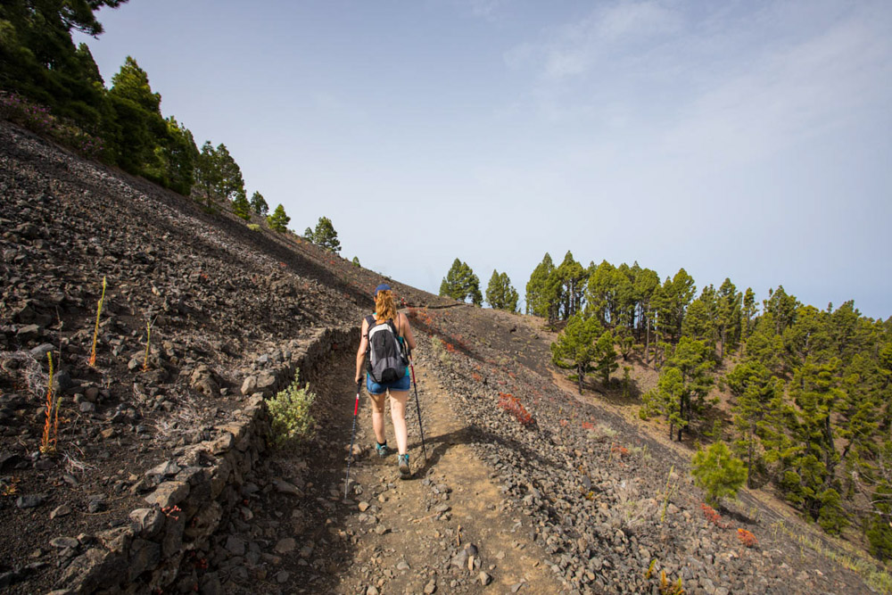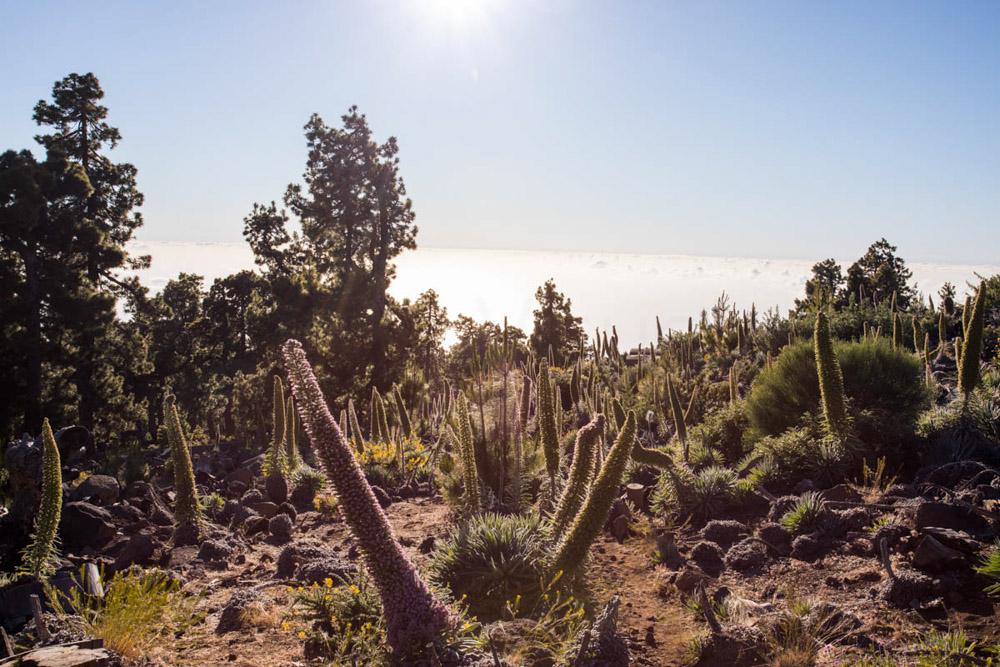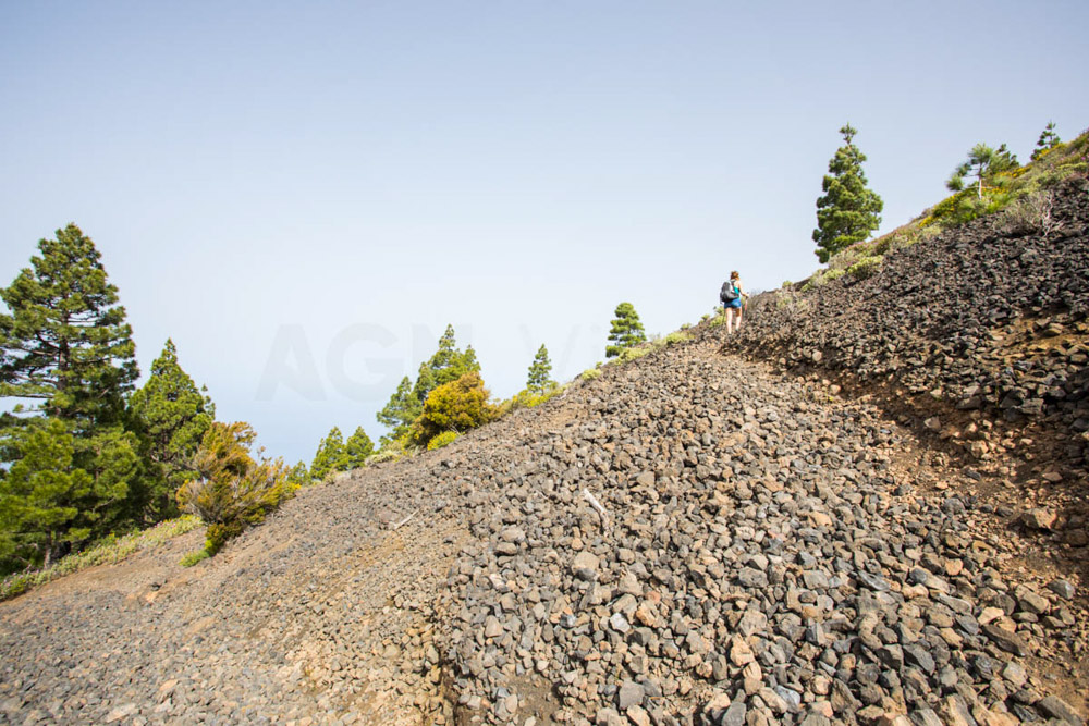 Subimos a la cima, y lo cierto es que no había mucho desnivel; no era una subida dura, pero los dos estábamos especialmente cansados. El COVID nos había dejado muy tocados, pero muy, muy tocados. El cansancio era fuerte. Pero bueno, eso no nos impedía seguir subiendo y disfrutar de esos bosques de pino canario.