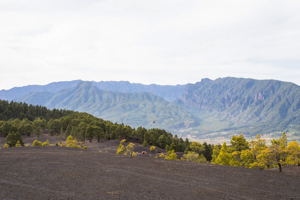 Después de comer nos vamos al Llano de las Brujas. Aquí es donde, en septiembre de este mismo año, erupcionaría el volcán de Cumbre Vieja. Desgraciadamente, esa erupción arrasaría con todo, y mucha gente lo perdió todo. Ni seguros ni Estado… como siempre, dejándonos tirados.