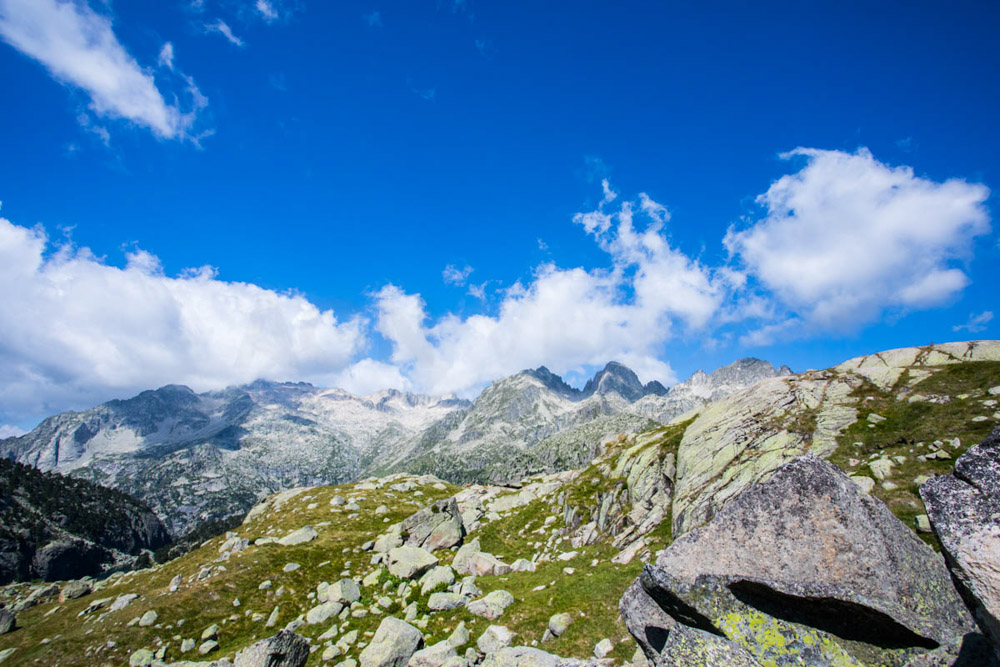 Pasamos el refugio y nos desviamos un poco a la izquierda, subiendo hacia el Estany Llong y el Estany de Travessani. En esa zona paramos a comer y descansar, disfrutando del circo de montañas que nos rodea. Desde ahí se puede ver la Serra de Tumeneia, la Punta Alta de Comalesbienes y otras cimas como la Punta d’Arlet.