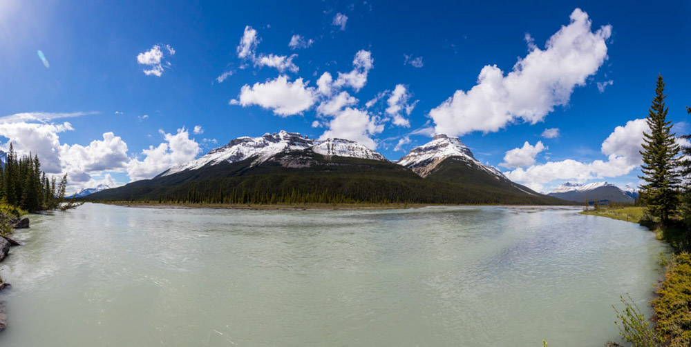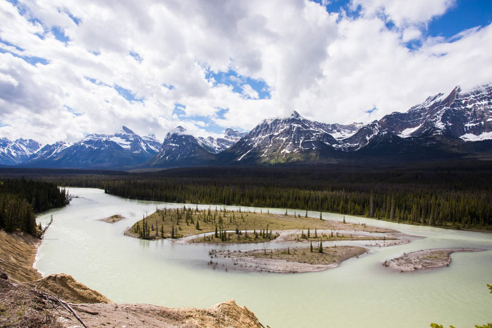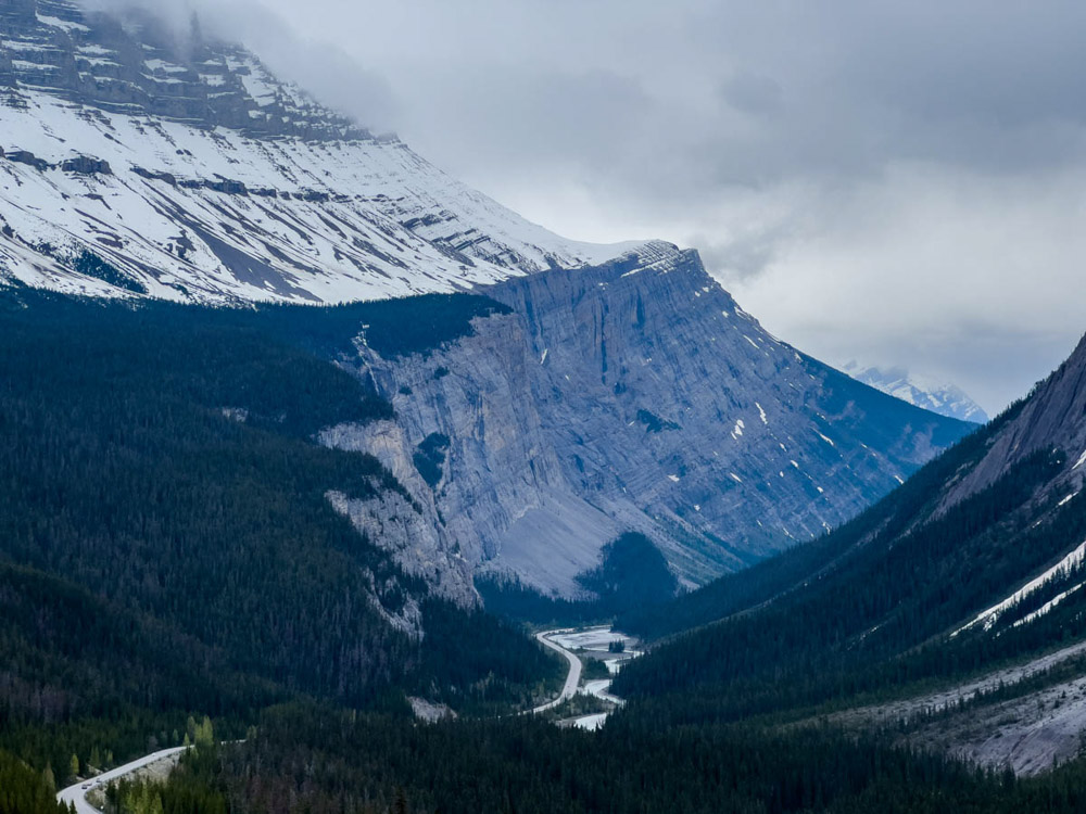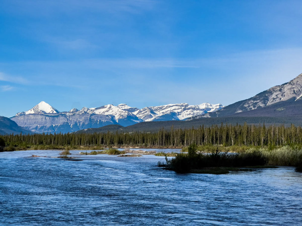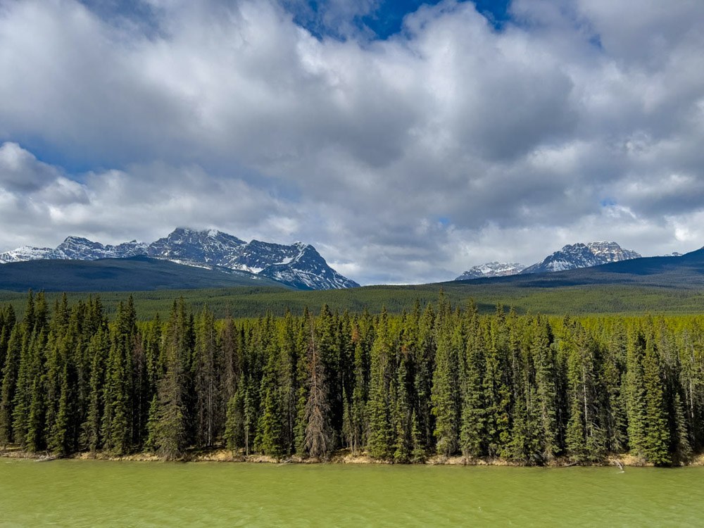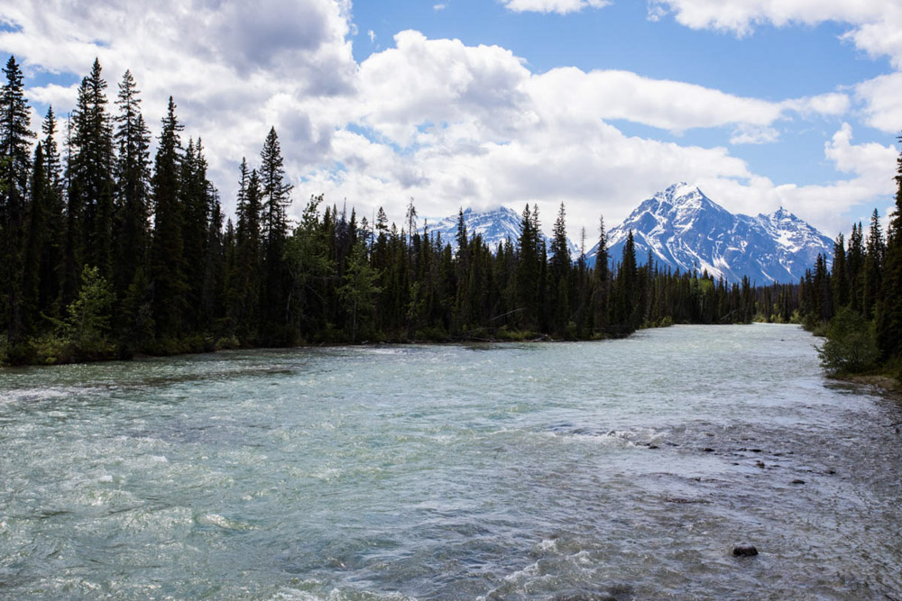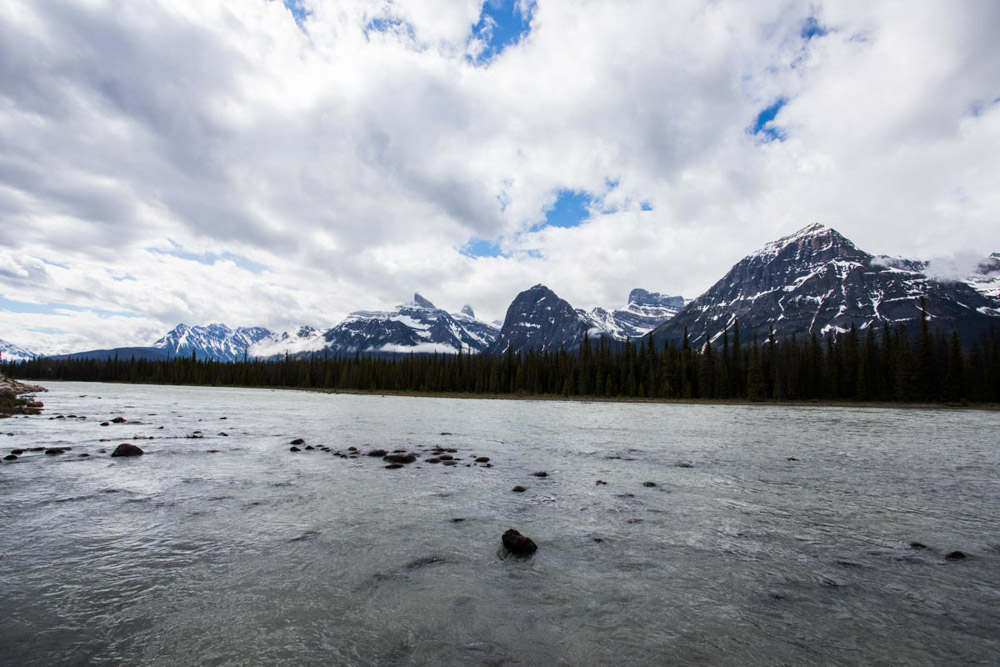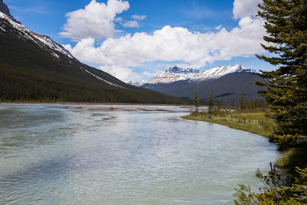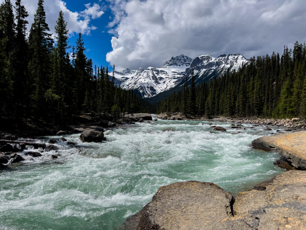 El camino fue una maravilla: paisajes espectaculares, montañas nevadas, bosques infinitos… En el trayecto nos cruzamos con cabras montesas, y más adelante visitamos las impresionantes cascadas de Sunwapta, rodeadas de un paisaje de postal, con los ríos salvajes y las montañas de fondo.