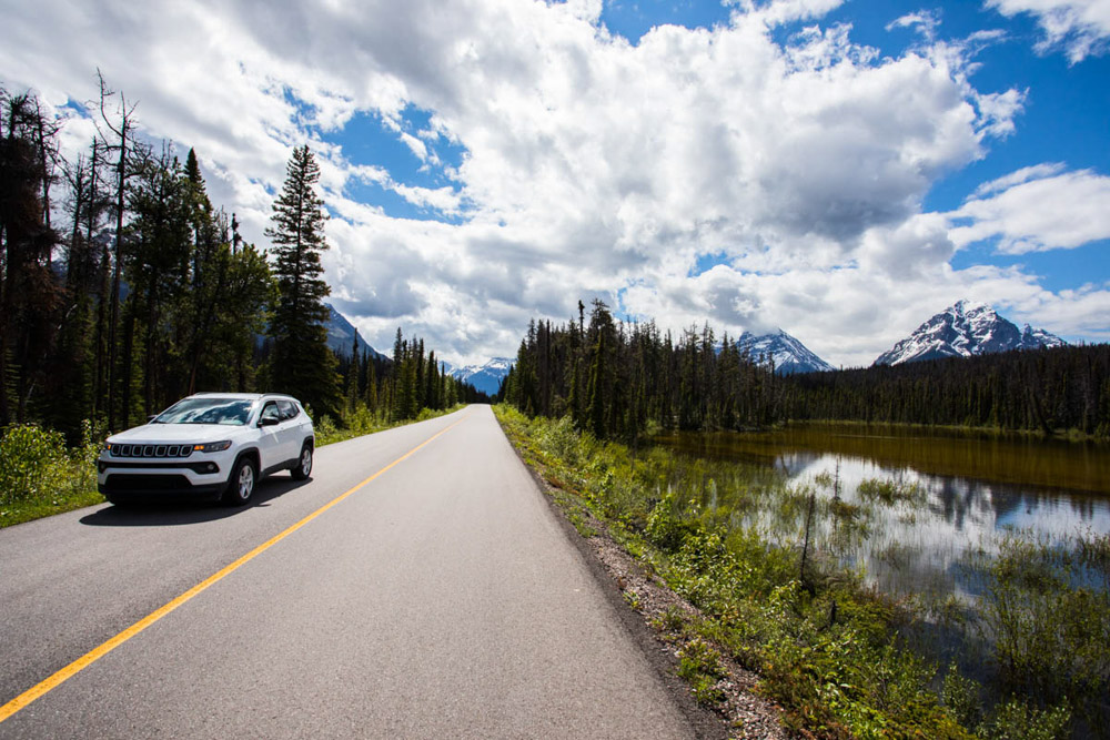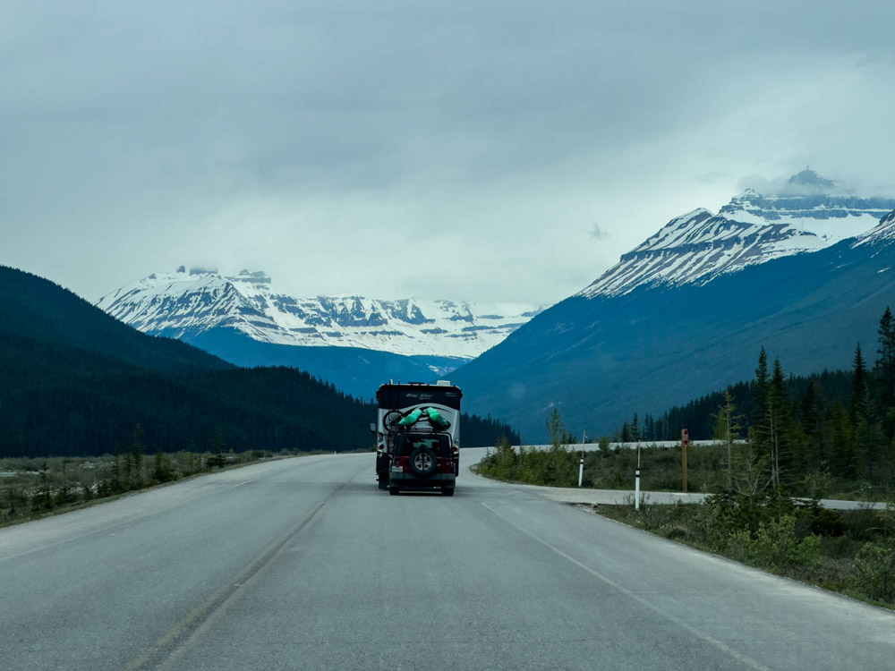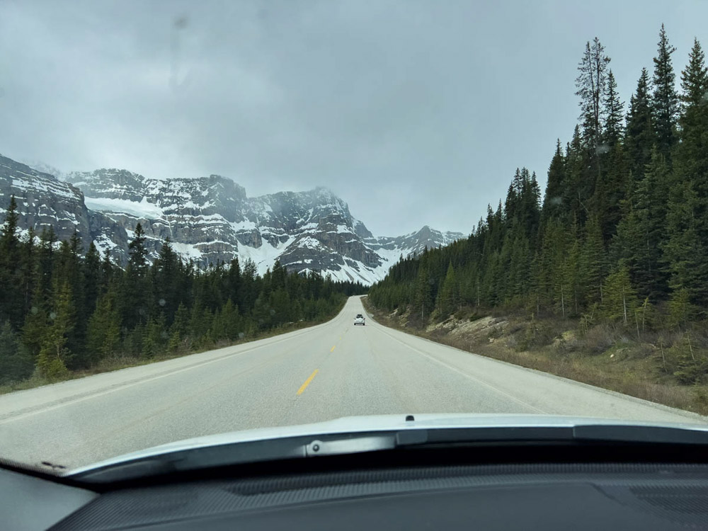 ¡Y ahora sí, ahora sí empieza el viaje de verdad! Por fin dejamos atrás el susto de tener que confinarnos otra vez. Cogimos el coche y a tirar millas. Fue fantástico conducir por esas grandes autopistas, atravesando las amplias llanuras de la zona de Calgary, con las imponentes Montañas Rocosas al fondo. Fue un momento realmente espectacular. Estábamos los dos emocionados: después de tantos años, después del coronavirus, de aplazarlo tantas veces… ¡qué gusto, qué alegría estar finalmente allí!