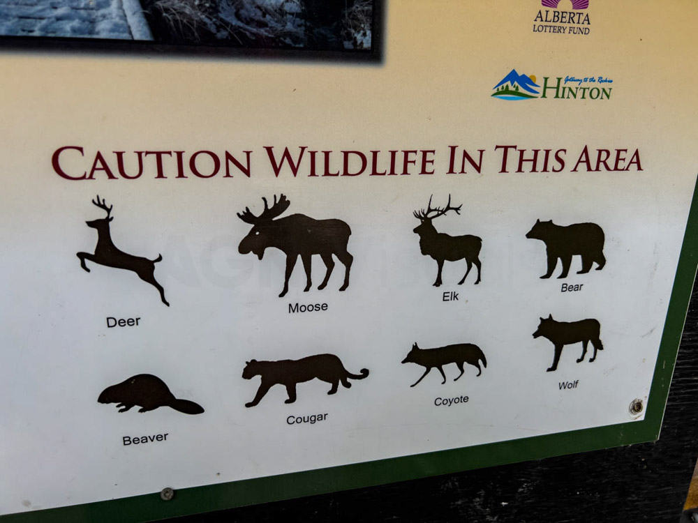 En uno de los carteles informativos de la ciudad encontramos algo que nos llamó especialmente la atención: hablaba de los pumas. A diferencia de los carteles de advertencia sobre osos, que recomiendan no correr, no luchar y quedarse quieto, este decía algo muy distinto: “Si te encuentras con un puma… lucha”. Así, tal cual. Te recomienda hacerte grande, mirar al animal a los ojos y resistir. Eso sí, si te da tiempo a reaccionar, claro. Nos pareció tan curioso como inquietante. Canadá tiene una naturaleza increíble, pero también impone respeto.
