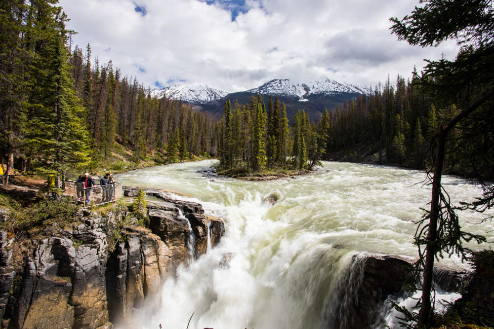 Más tarde, decidimos volver a las cascadas de Sunwapta, que ya habíamos visto, pero queríamos explorarlas con más calma. Nos impresionaron todavía más la segunda vez: el rugido del agua, el entorno natural… Era imposible no quedarse embobados mirando.