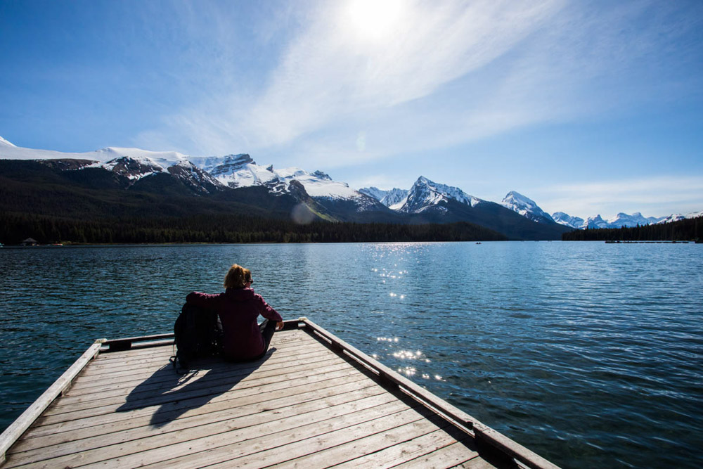 Nos levantamos temprano, como de costumbre, y pusimos rumbo hacia una excursión por el Maligne Lake, en el Parque Nacional de Jasper. La ruta era preciosa, pero también algo inquietante: el bosque es muy denso, con senderos estrechos y rodeados por vegetación espesa. Mi pareja estaba bastante asustada, ya que en cualquier momento parecía que podía aparecer un oso. Íbamos bien preparados con nuestro spray anti-osos y haciendo ruido, pero si no estás acostumbrado a la naturaleza y la fauna salvaje, la zona puede asustar.