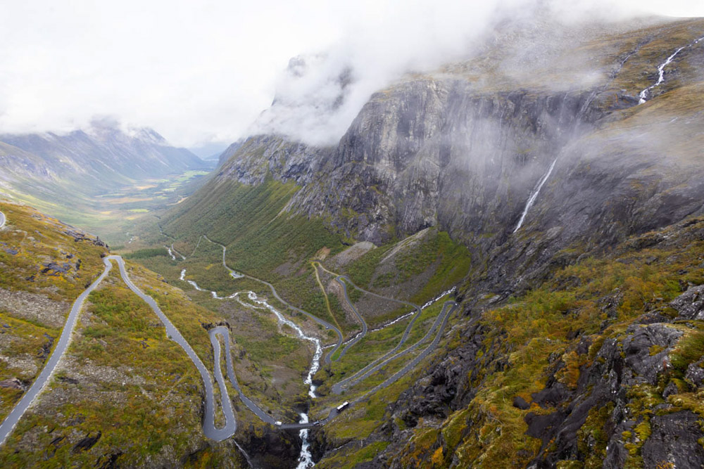 Ese día nos dirigimos hacia la famosa carretera de los Trolls, o Trollstigen, como se llama en noruego. Es una carretera realmente impresionante. Aunque hay otras rutas quizás más espectaculares, lo que hace única a esta es la vista desde el mirador superior, desde donde se ve toda la serpenteante carretera que sube por la montaña.