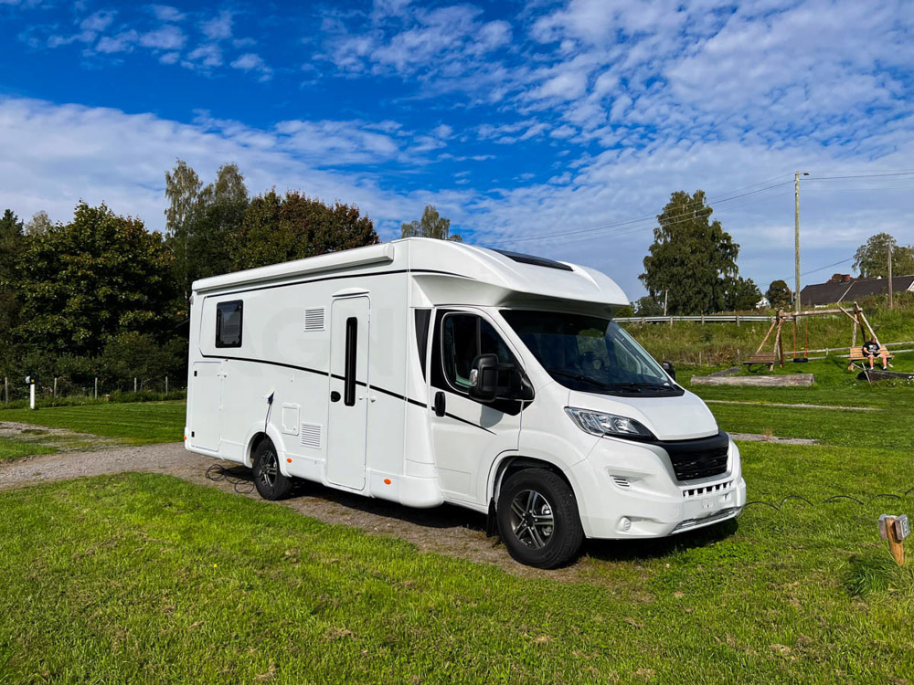 Comenzamos la ruta bajo la lluvia, y luego llegamos al primer camping para poner todo en orden. Deshacemos las maletas y, por suerte, aquí solo llueve un poco. Organizamos todo y pasamos la primera noche muy cómodamente en esta gran autocaravana.