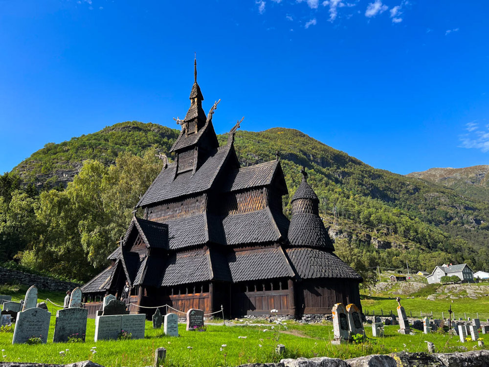 Nos levantamos bien prontito para empezar la ruta hacia los fiordos noruegos. Vamos visitando algunos pueblos, alguna que otra iglesia de madera, y yo voy recordando los viejos tiempos, cuando pasé por el mismo lugar en 2004, durante su viaje de ese año. Vamos disfrutando del camino y paramos en la famosa iglesia de Borgund, una iglesia de madera que, aunque sufrió un incendio, está muy bien conservada.