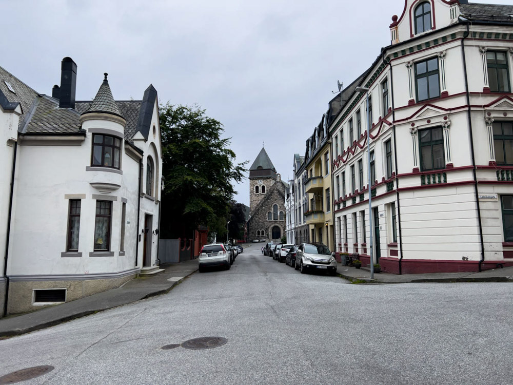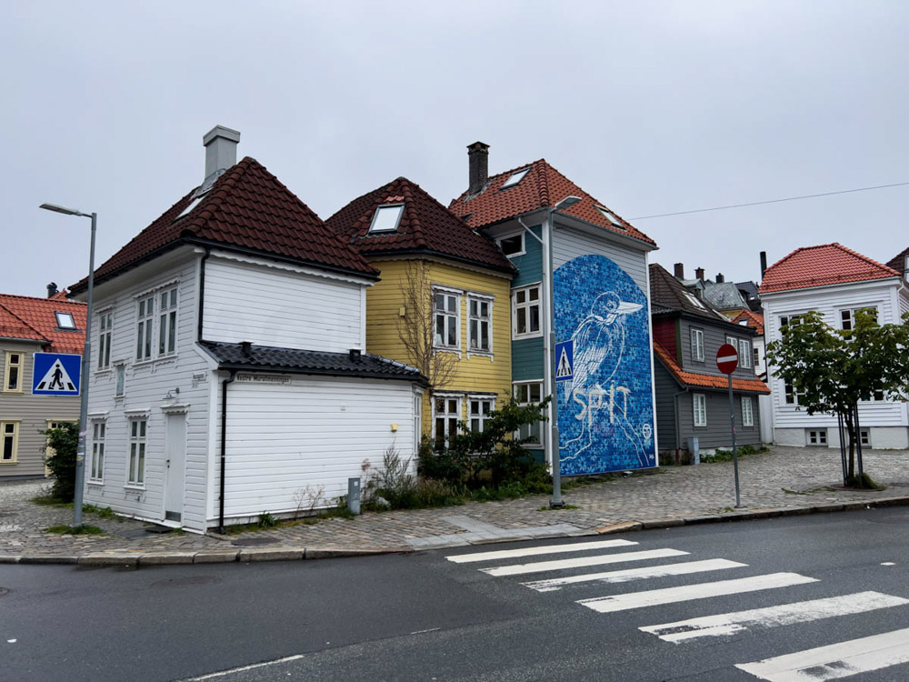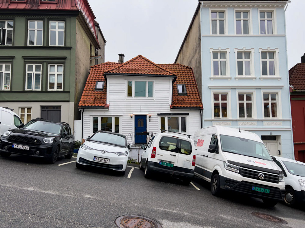 Bergen es bastante singular. Tiene unas casas de madera únicas y un estilo muy pintoresco. Aunque nos habría gustado quedarnos más tiempo, vemos que el tiempo no acompaña ni hoy ni al día siguiente, así que decidimos marcharnos. Además, para continuar la ruta es necesario cruzar un fiordo, y al día siguiente anuncian fuertes vientos.