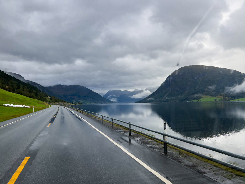 Salimos de este precioso pueblo y nos dirigimos directamente a Bergen. Hoy el día está muy gris, con bastante lluvia durante el trayecto, pero eso no nos detiene y seguimos adelante. Al final, no dejamos de estar en un país nórdico, donde todo es tan verde y bonito precisamente gracias a la lluvia.