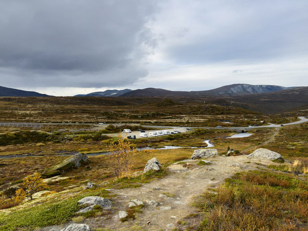 Amanece un nuevo día en esta maravillosa área de autocaravanas con vistas al mar. Desayunamos prontito y nos dirigimos esta vez hacia la zona del Parque Nacional de Dovrefjell, ya en el centro de Noruega.