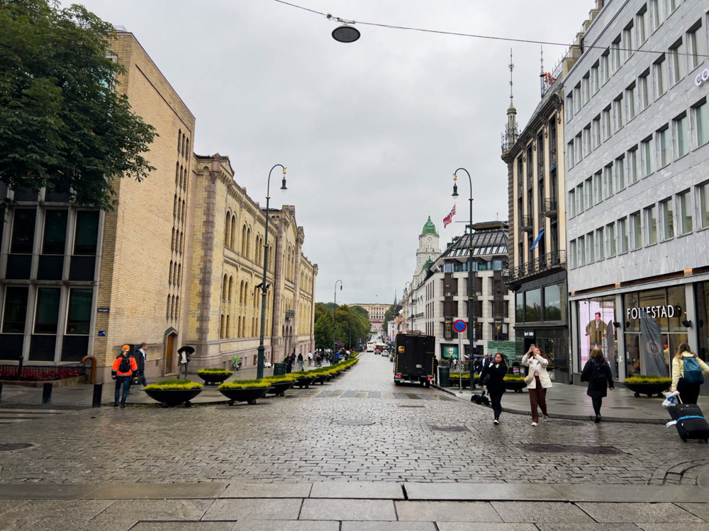 Al llegar a Oslo, como comentaba antes, sigue lloviendo mucho. Además de la lluvia, hace frío y viento. Solo podemos ver una zona pequeña de la ciudad, y lo hacemos a marchas forzadas, bastante rápido.