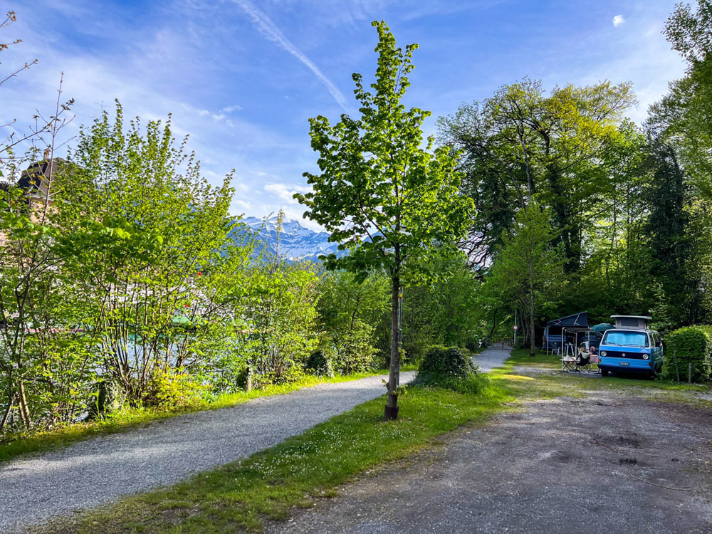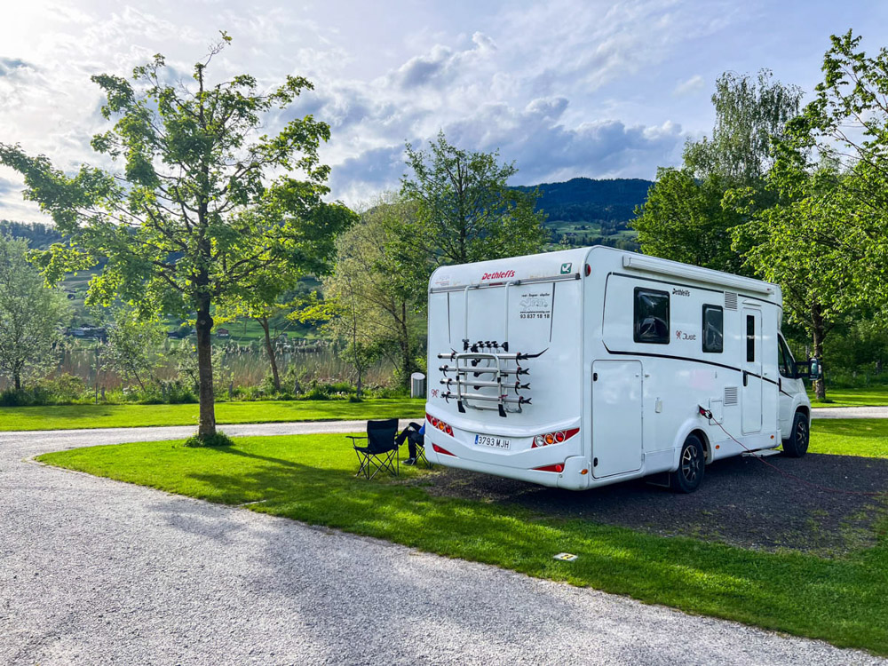 Una vez visitado el pueblo, continuamos nuestra ruta en autocaravana y nos dirigimos a un camping junto al Seefeld Park Särments. Un sitio un poco caro… como todo en Suiza: caro, muy caro. Aquí nos entran dudas sobre qué hacer al día siguiente. Se pronostican fuertes lluvias, y no queremos pasar los pocos días que tenemos atrapados por el mal tiempo. Así que decidimos irnos hacia el norte, seguir recorriendo Suiza, pero descartando algunos lugares por culpa del clima.