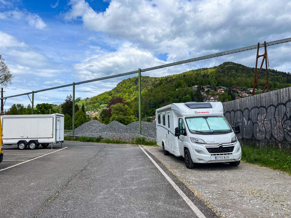 Nos levantamos después de haber dormido apenas dos horas. Pasamos la noche en un área de autocaravanas que resultó ser una auténtica pesadilla, a pesar de pertenecer a la red Camping Car Park. Era un lugar muy estrecho, prácticamente debajo de un puente con muchísimo tráfico. Desde primera hora de la mañana —y, de hecho, durante toda la noche— se escuchaba el ruido constante de los coches y camiones pasando por encima, especialmente el sonido de la junta del puente contra el asfalto. Horrible. Una de las peores noches del viaje.
