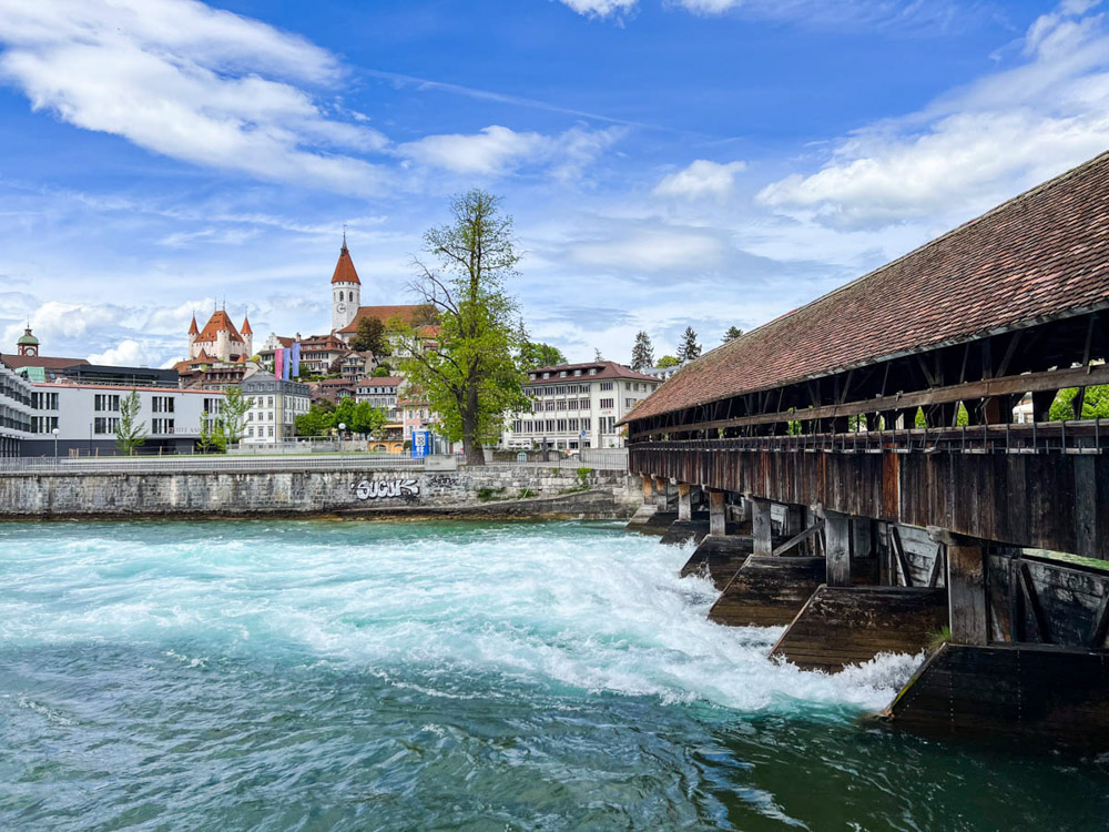 Seguimos nuestro camino. Después de comer, aparcamos la autocaravana en un parking cerca de unos ferrocarriles y vamos a visitar el precioso pueblo de Thun. Sabemos que es un lugar realmente bonito. Aunque está masificado, al ser más grande no se siente tanto como en otros pueblos más pequeños.
