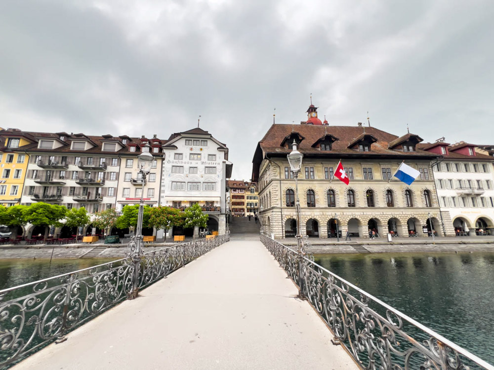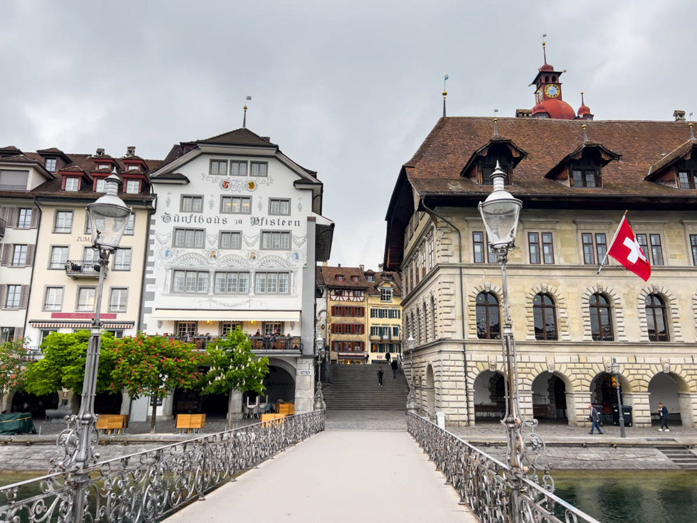 Después de levantarnos, nos vamos a visitar la ciudad de Lucerna. La verdad es que esta ciudad nos sorprendió mucho: tiene muchísimo arte en las calles, en las fachadas de las casas, todo muy bien cuidado. Las calles, los puentes… todo está muy bonito y en excelente estado. Nos gustó muchísimo.