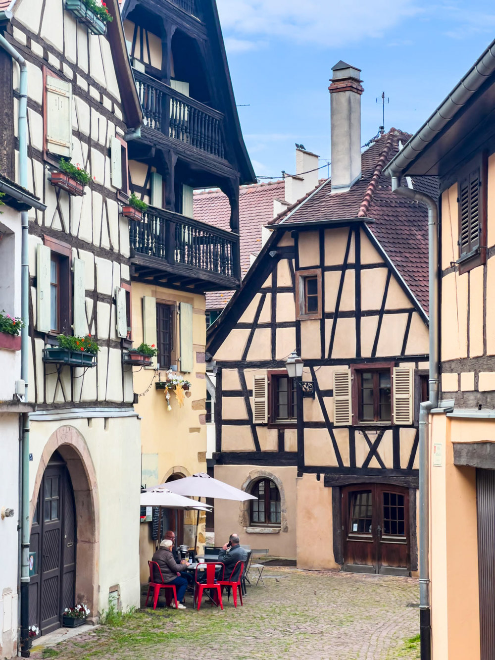 Otro pueblo precioso. De nuevo nos tocó un día nublado, pero agradable. No había demasiada gente, así que fue una visita muy tranquila y placentera. El punto central del pueblo es la gran plaza Place du Marché aux Vins, rodeada de casas de colores y calles empedradas. Allí disfrutamos de las vistas y del ambiente tan acogedor.