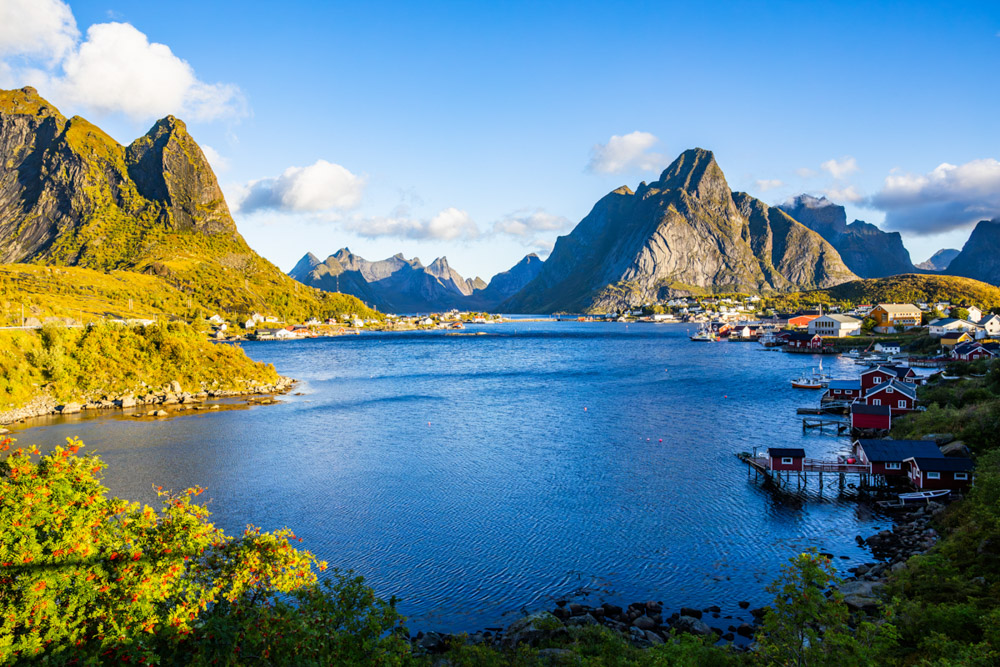 Al terminar, regreso a la autocaravana para desayunar con mi padre y nos dirigimos al pueblo de Reine. Hace un día radiante, perfecto para disfrutar de un agradable paseo por este pintoresco pueblo rodeado de fiordos y montañas.