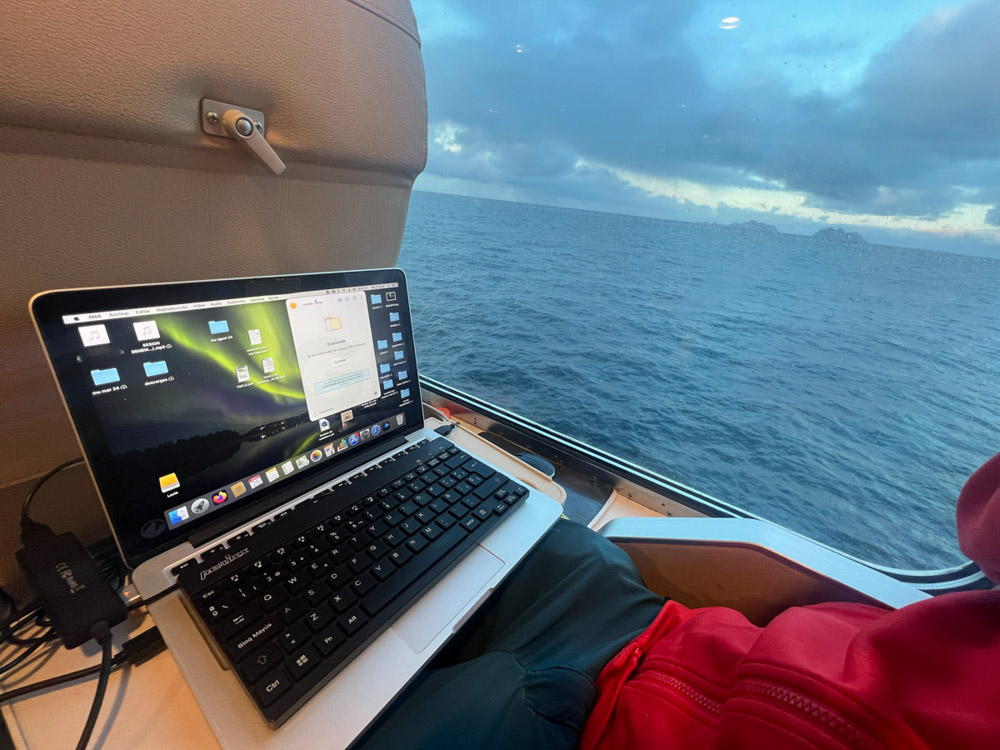 Aprovecho el viaje para descansar e intentar hacer algunas copias de seguridad por internet, pero la conexión es demasiado lenta.