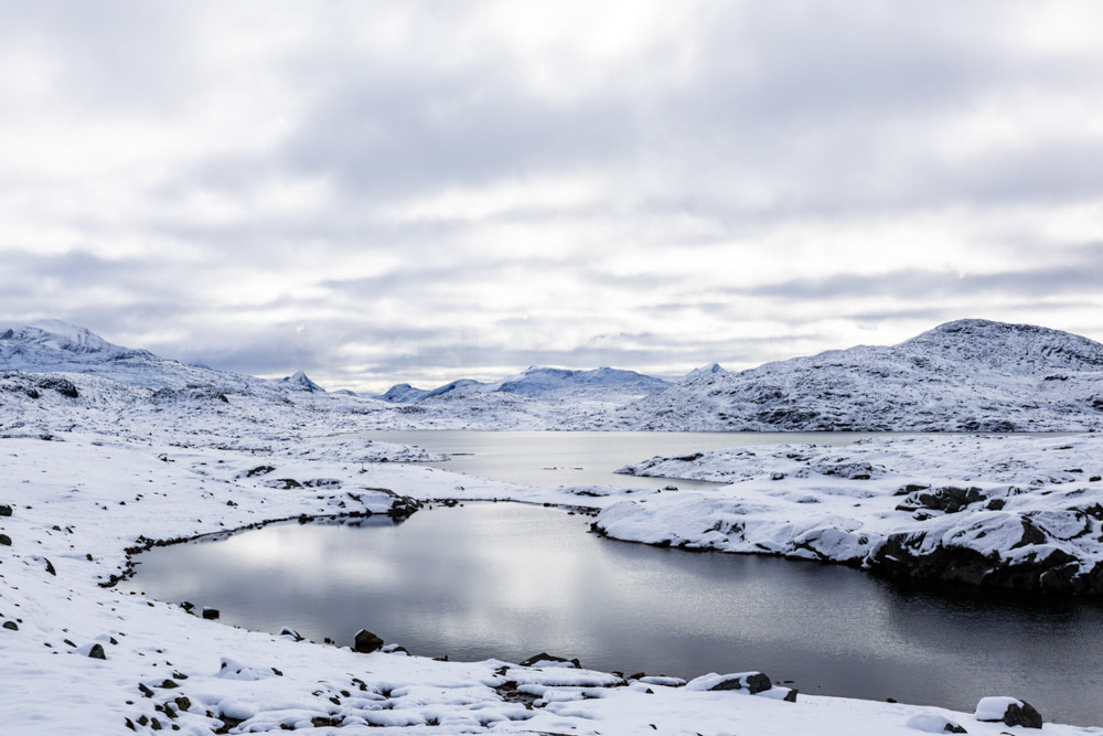Paso nuevamente por el centro del Círculo Polar Ártico. La primera vez que pasé por aquí con mi padre, todo el paisaje estaba teñido de los colores del otoño; ahora, en cambio, es un paisaje mucho más invernal, con las montañas cubiertas de blanco.