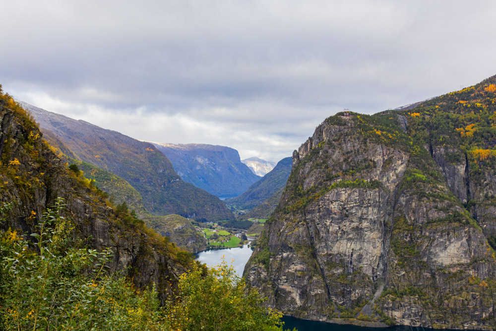 Bajo un poco y llego a otro mirador al pie de la montaña, con el fiordo a mis pies y una caída impresionante. ¡Qué lugar tan espectacular!