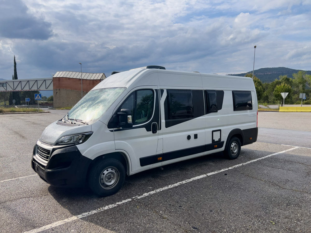 ¿Por qué? Porque una autocaravana, en caso de accidente, tiene una parte trasera hecha de contrachapado. Es mucho menos segura: se deshace fácilmente y los que van detrás casi no sobreviven. En cambio, una camper tiene una estructura de furgoneta, hecha de hierro, mucho más resistente. Por eso nos decidimos por ella.