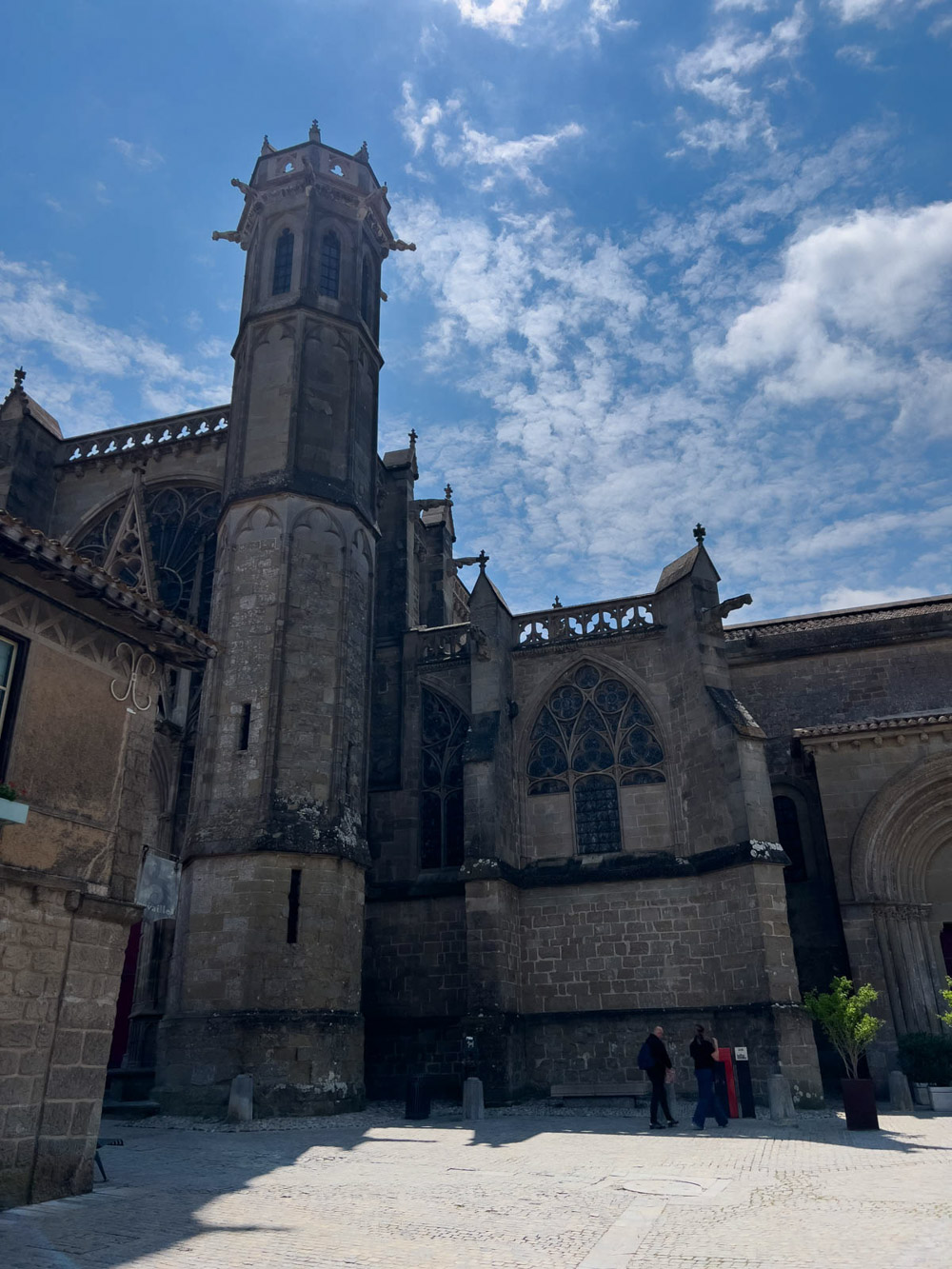 Al día siguiente visitamos el pueblo de Sarlat-la-Canéda. Es un pueblo muy bonito, de origen medieval, con mucho encanto en cuanto a arquitectura, pero demasiado turístico para nuestro gusto. Había demasiadas terrazas de restaurantes, demasiada gente, y la sensación general era un poco como la de Lloret de Mar o algún pueblo costero muy masificado. No lo disfrutamos nada, la verdad. Además, yo me encontraba mal, arrastrando aún el resfriado, así que fue una visita bastante incómoda y breve.