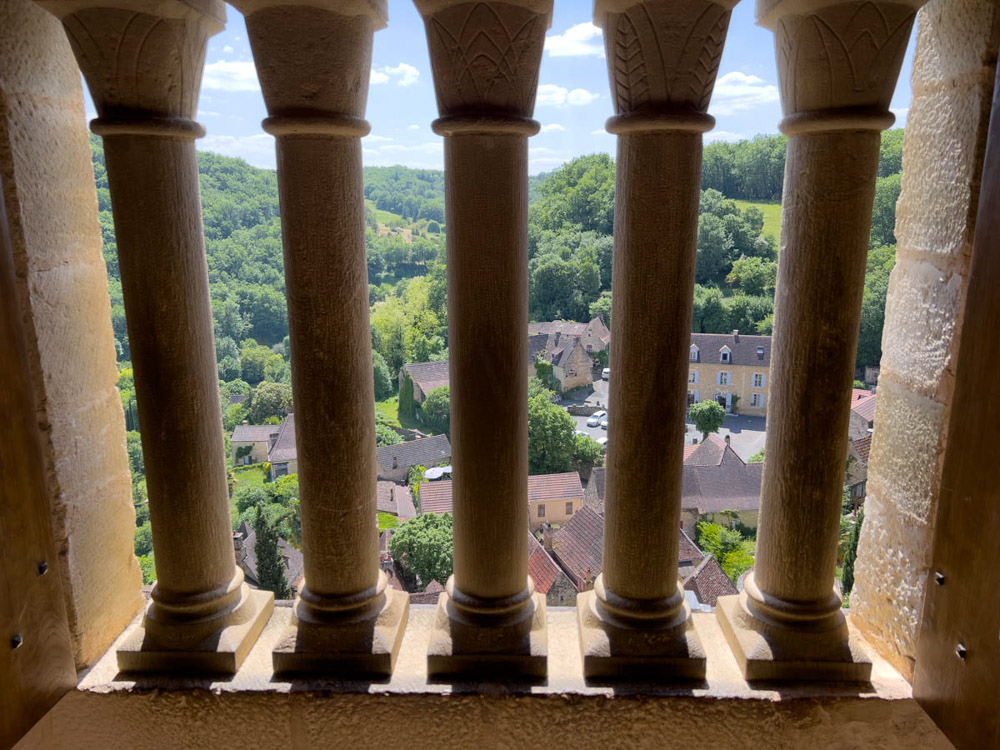 La Roque-Gageac es un pueblo espectacular, encajado entre una gran pared de roca y el río, con casas que se integran perfectamente en el paisaje. Hay rutas preciosas siguiendo el curso del río que conectan con otros pueblos y castillos. Paseamos por sus callejuelas, subimos por una de ellas para tener una vista panorámica del valle y nos empapamos bien del ambiente.