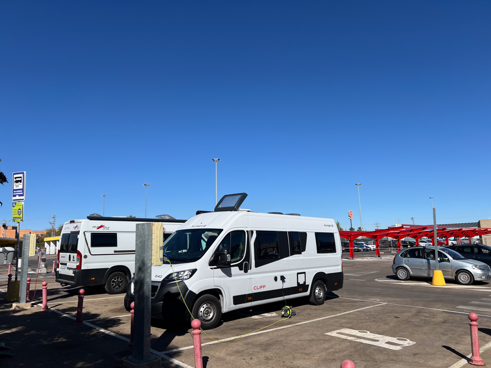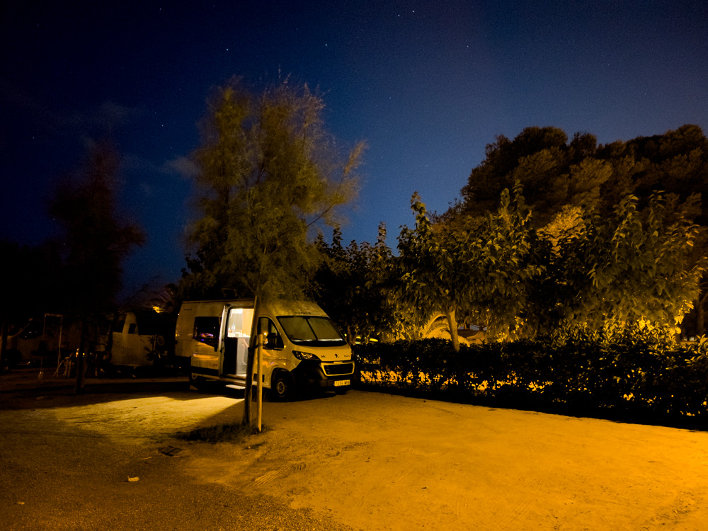 No sabemos donde pasar la noche de manera tranquila (por la costa fuera de campings hay muchos robos) y despues de probar un par de sitios nos vamos a la aera de autocaravanas del catllar. simplemente es un parking, pero estamos con otras campers mas asi que estaremos mas tranquilos.