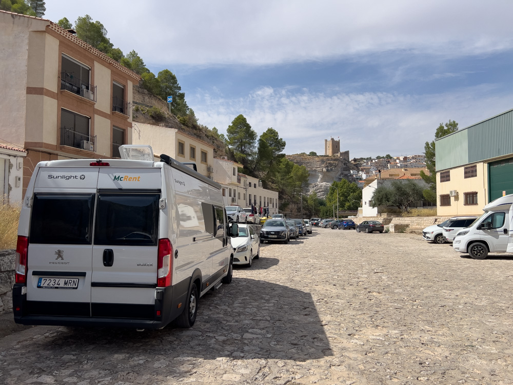 hacia las 14h llegamos a nuestra primera parada, Alcala del jucar. un pequeño y bonito pueblo a orillas del rio jucar. aparcamos la camper y vamos a dar una vuelta por el pueblo. El calor sigue intenso y notamos que cargando al niño nos cansamos bastante, asi que no subiremos hasta rriba el castillo. Despues de disfrutar del paseo por el pueblo, nos volvemos a la camper para dirigirnos a una area privada de autocaravanas. es una area al lado de un pueblo, y que tambien alquilan habitaciones. Tambien tienes derecho a uso de los lavabos, cocina, sala de estar y lavadora (no incluye detergente). Tambien es cierto que esta cerca de expplotaciones de vino, y al estar en el mes de septiembre hay muchas moscas, muchas.Preparamos nuestra cena, la del niño y preparamos todo el interior de la camper para ir a dormir.