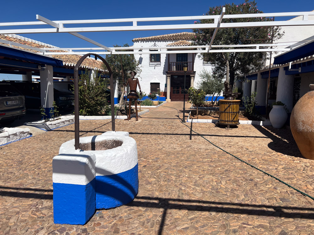 Desayunamos volvemos a la area al lado del carrefour para vaciar aguas. Despues compraremos algo de comida y continuaremos nuestra ruta hacia Puerto Lapice. Llegamos y vamos a comer a un restaurante con comida tipica de la mancha. Un restaurante a pie de carretera y muy bien cuidado.