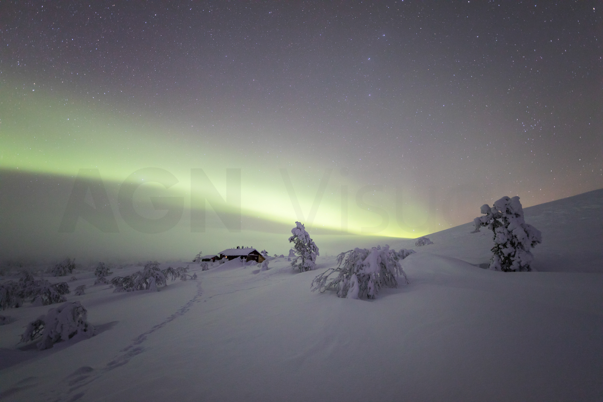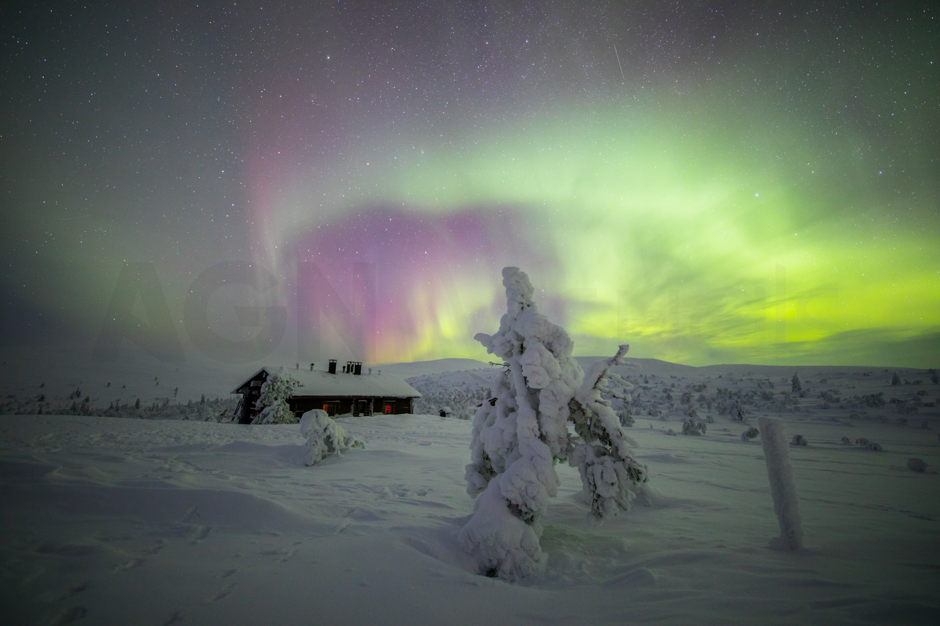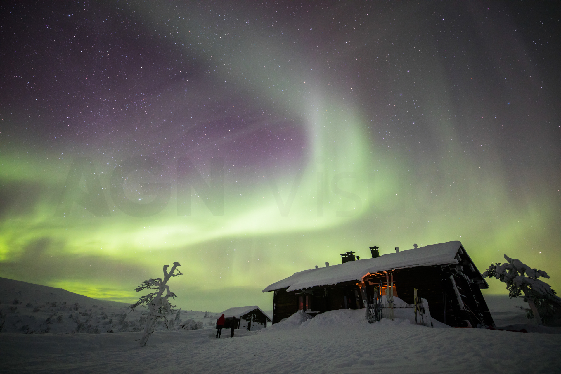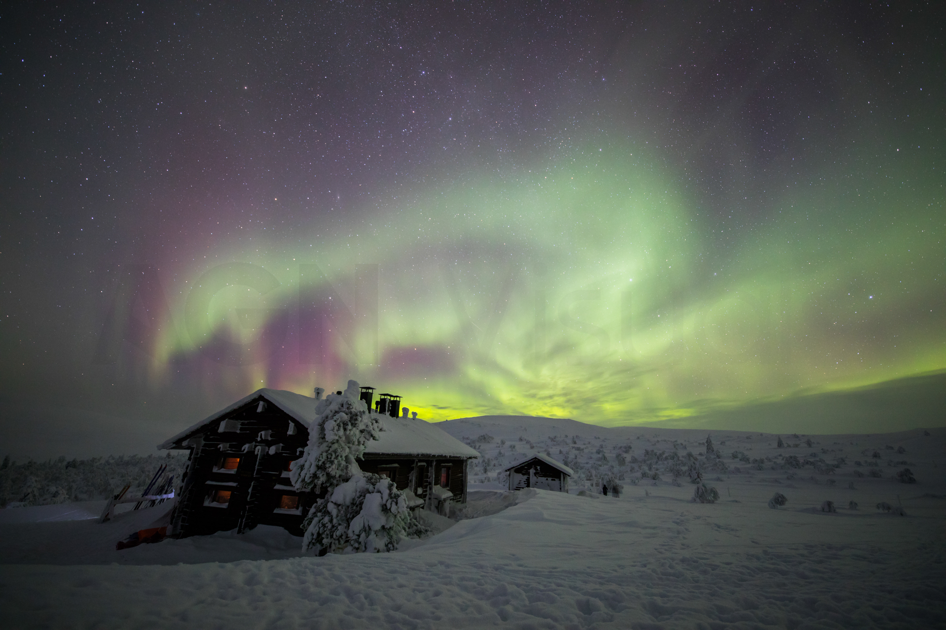 Llego a la cabaña y es momento de preparar la comida y encender el fuego. La cabaña está situada junto a un lago helado y ofrece buenas vistas al norte; con suerte, podré fotografiar de nuevo las auroras. Aquí coincidiré de nuevo con el chico francés. Estoy tan cansado que dejo la cámara haciendo un video timelapse y me voy a dormir. Al día siguiente, mi sorpresa fue que hubo una noche con auroras, no tan impresionantes como las anteriores, pero bonitas.