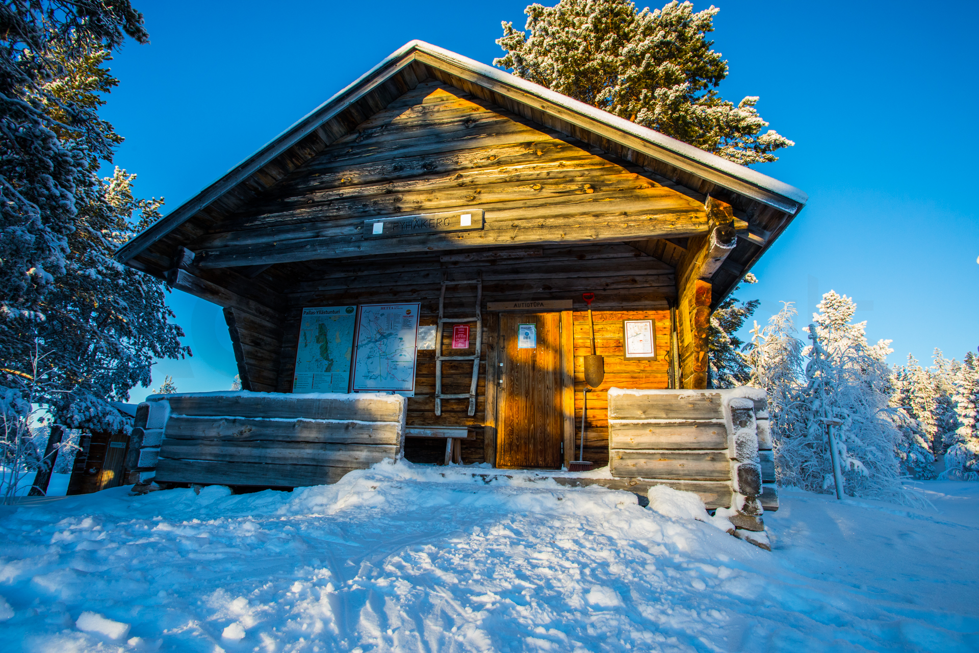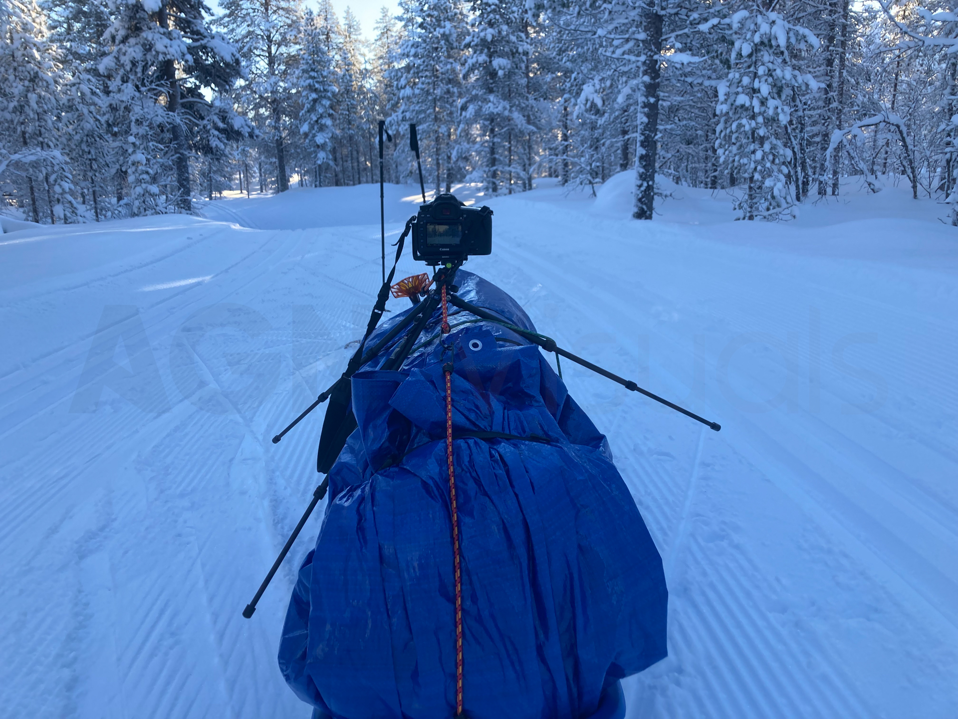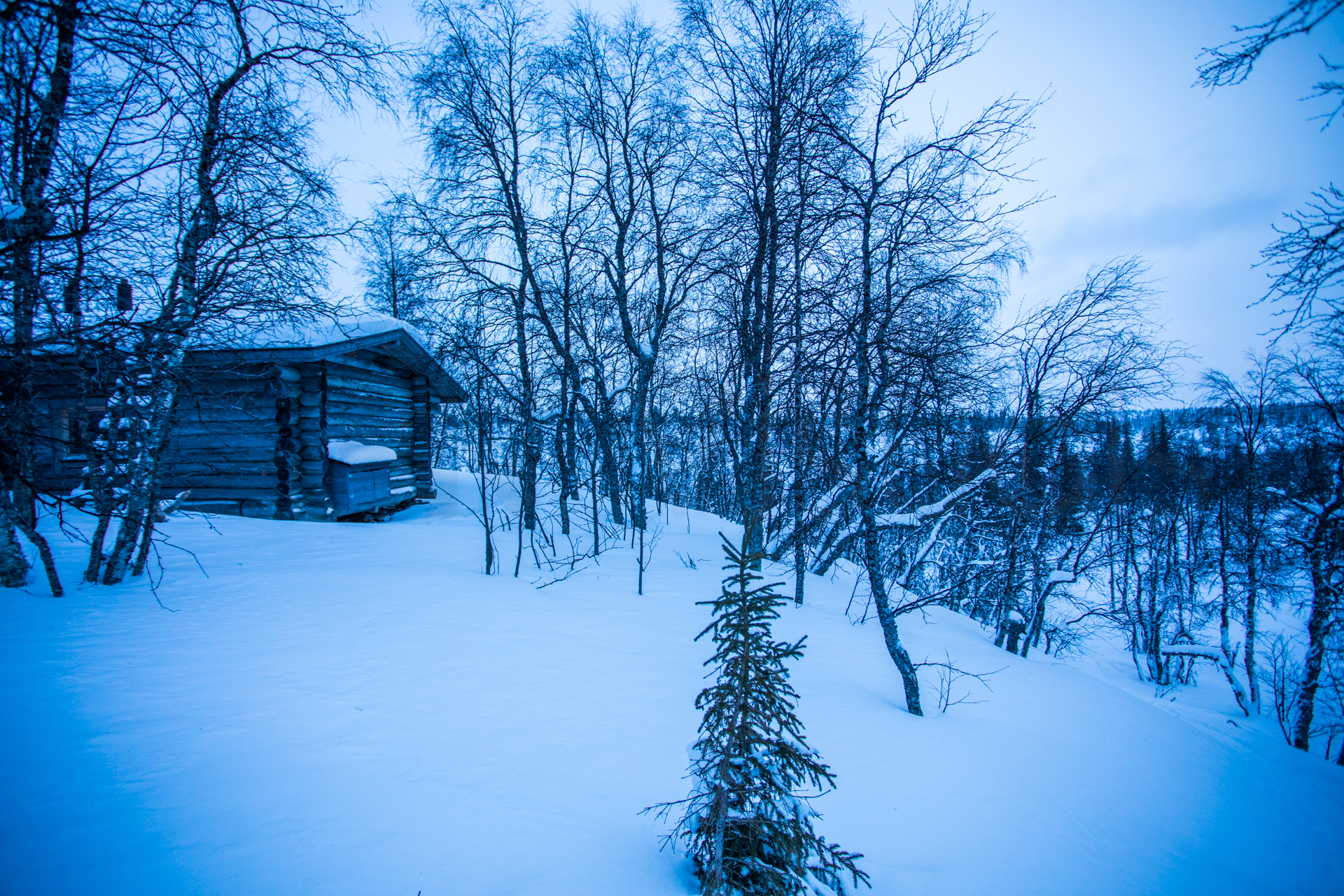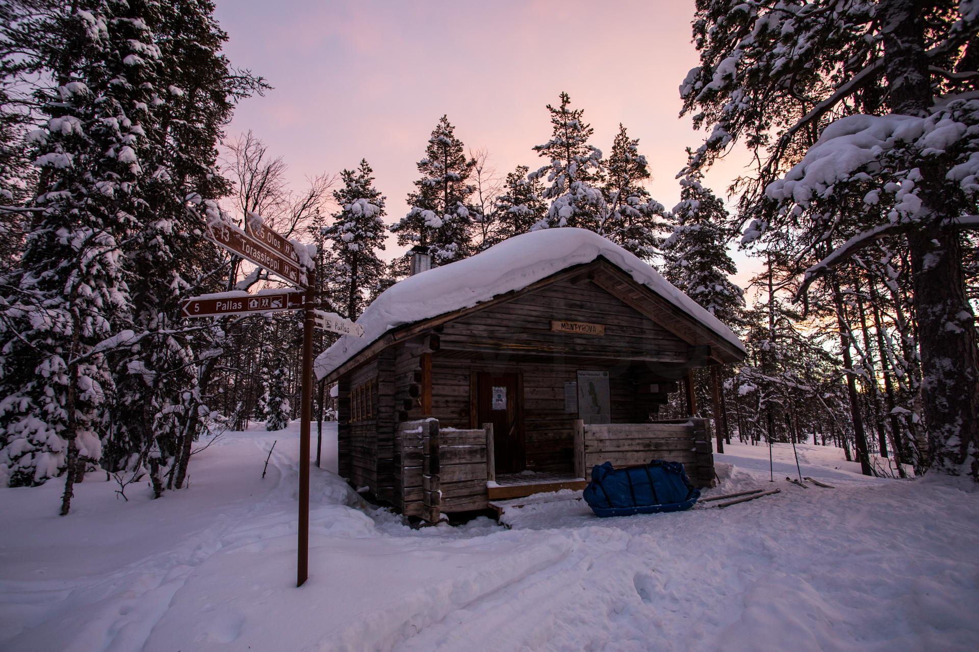 Esta etapa es preciosa con todo el paisaje nevado y con el día soleado. Llego a la cabaña de Pyhakero y paso una fría noche. Dejo la cámara afuera para hacer un timelapse nocturno esperando auroras boreales, pero las baterías de segunda marca me fallan (un peso que me podría haber ahorrado). Mira el equipo fotográfico que uso a día de hoy.