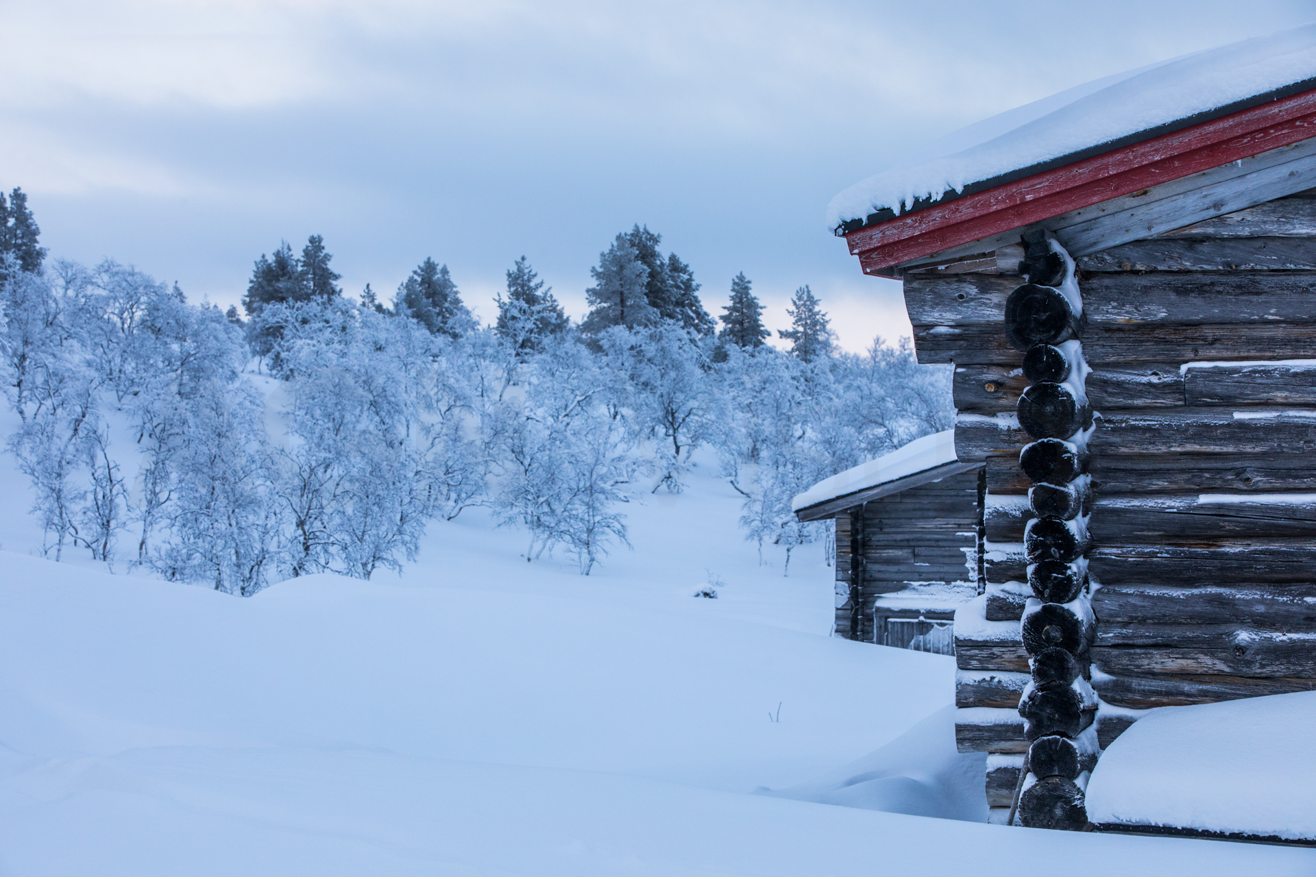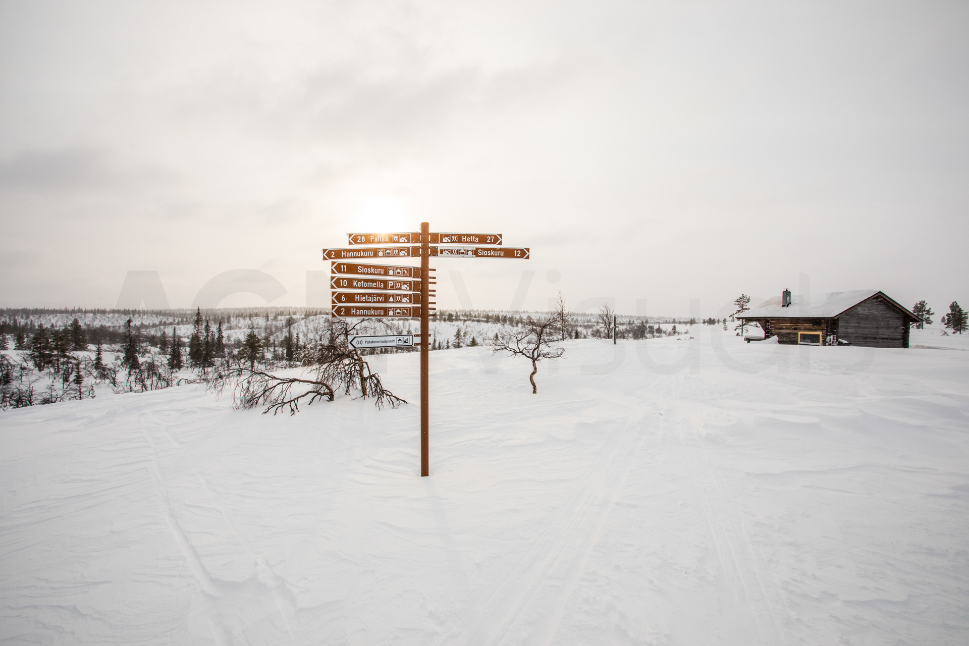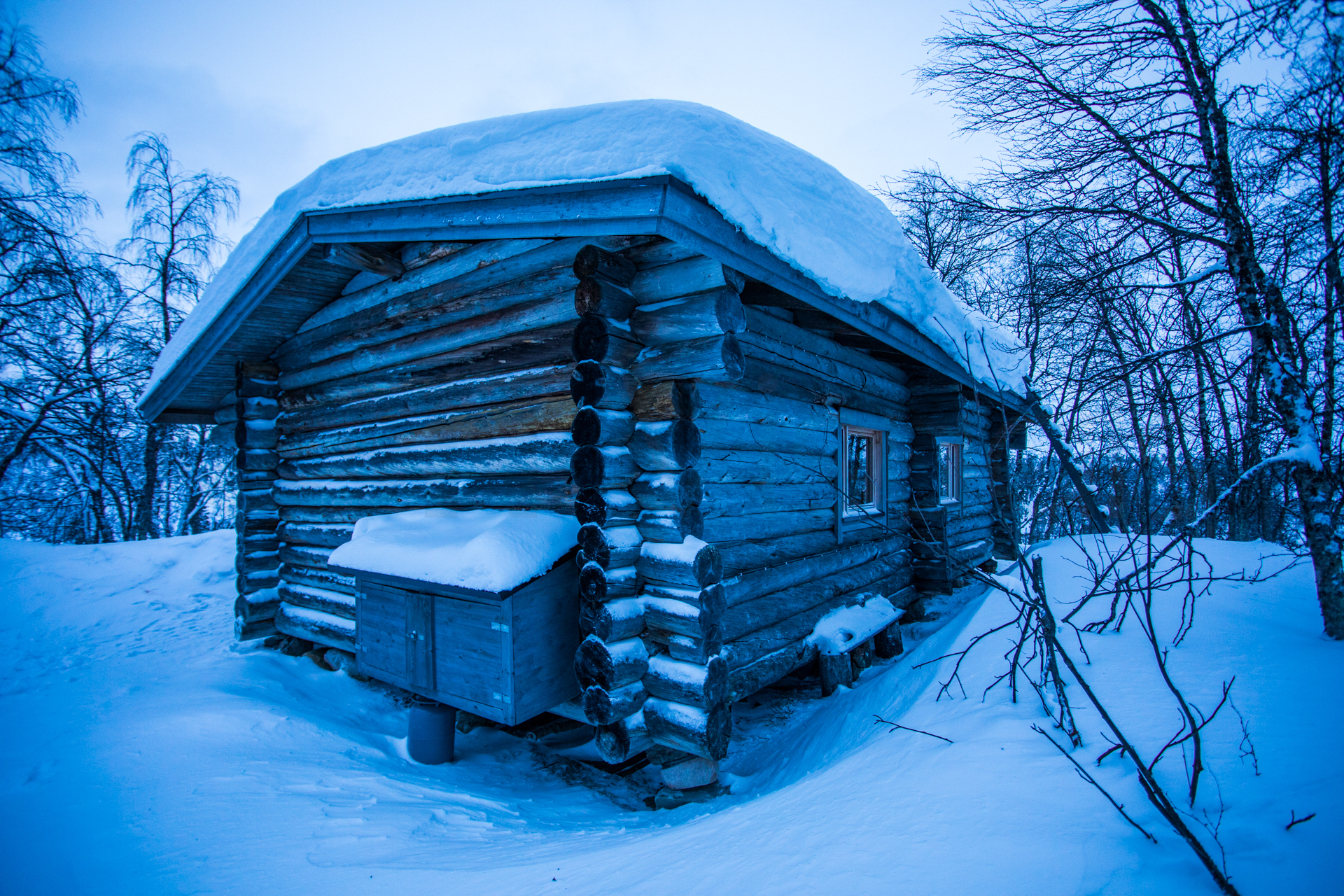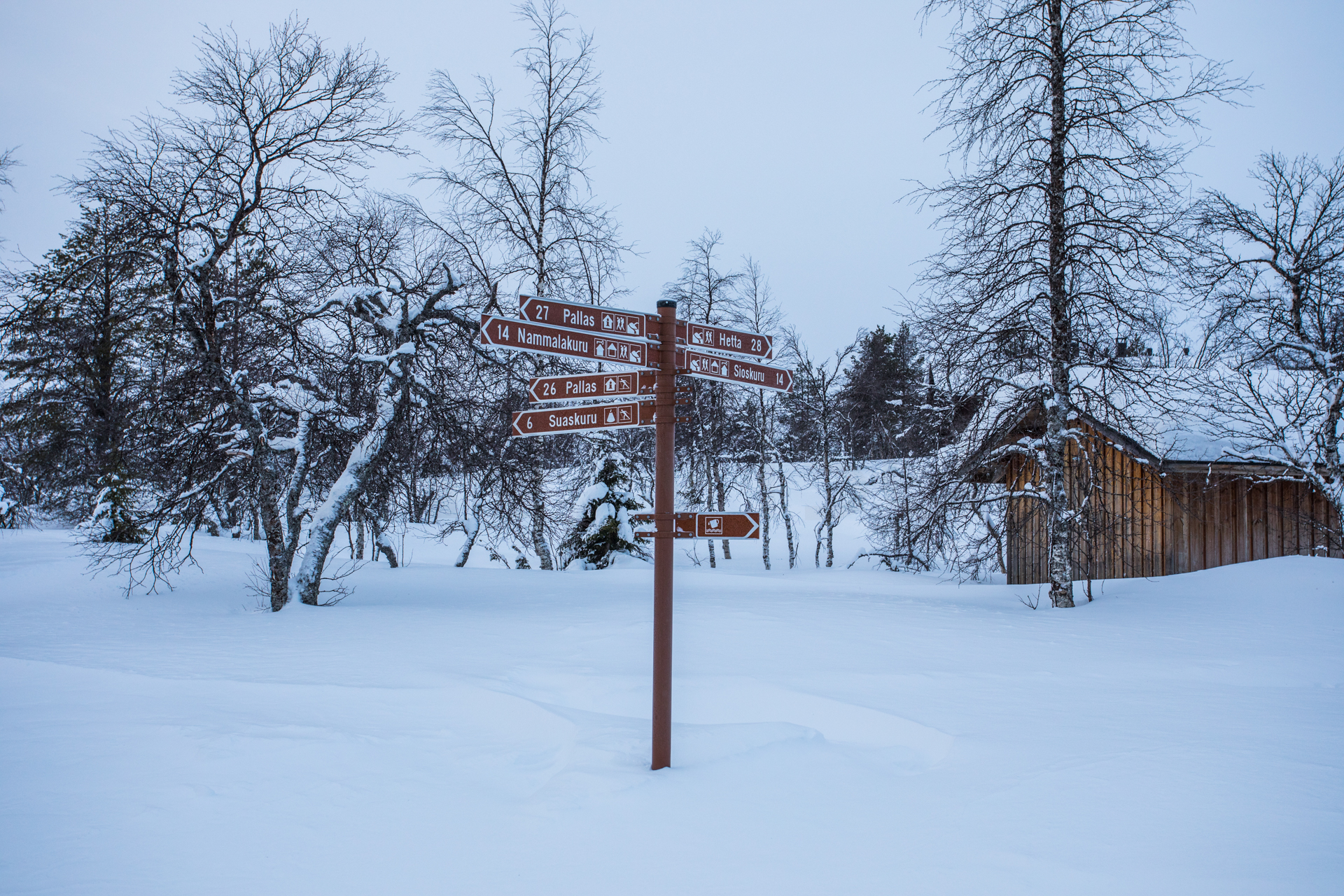 Esta etapa es preciosa con todo el paisaje nevado y con el día soleado. Llego a la cabaña de Pyhakero y paso una fría noche. Dejo la cámara afuera para hacer un timelapse nocturno esperando auroras boreales, pero las baterías de segunda marca me fallan (un peso que me podría haber ahorrado). Mira el equipo fotográfico que uso a día de hoy.