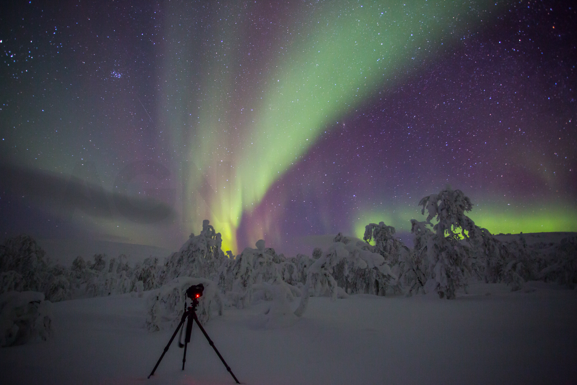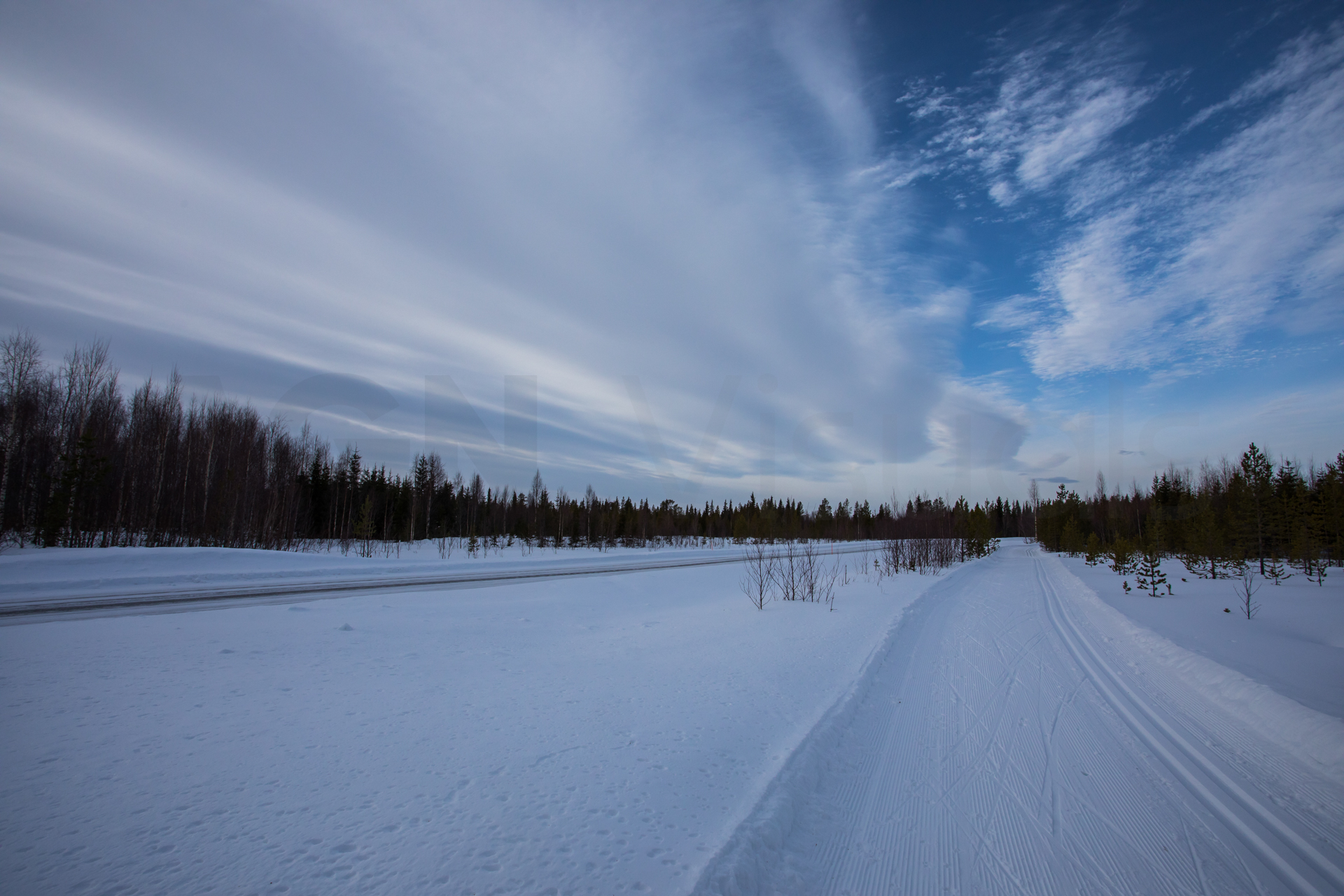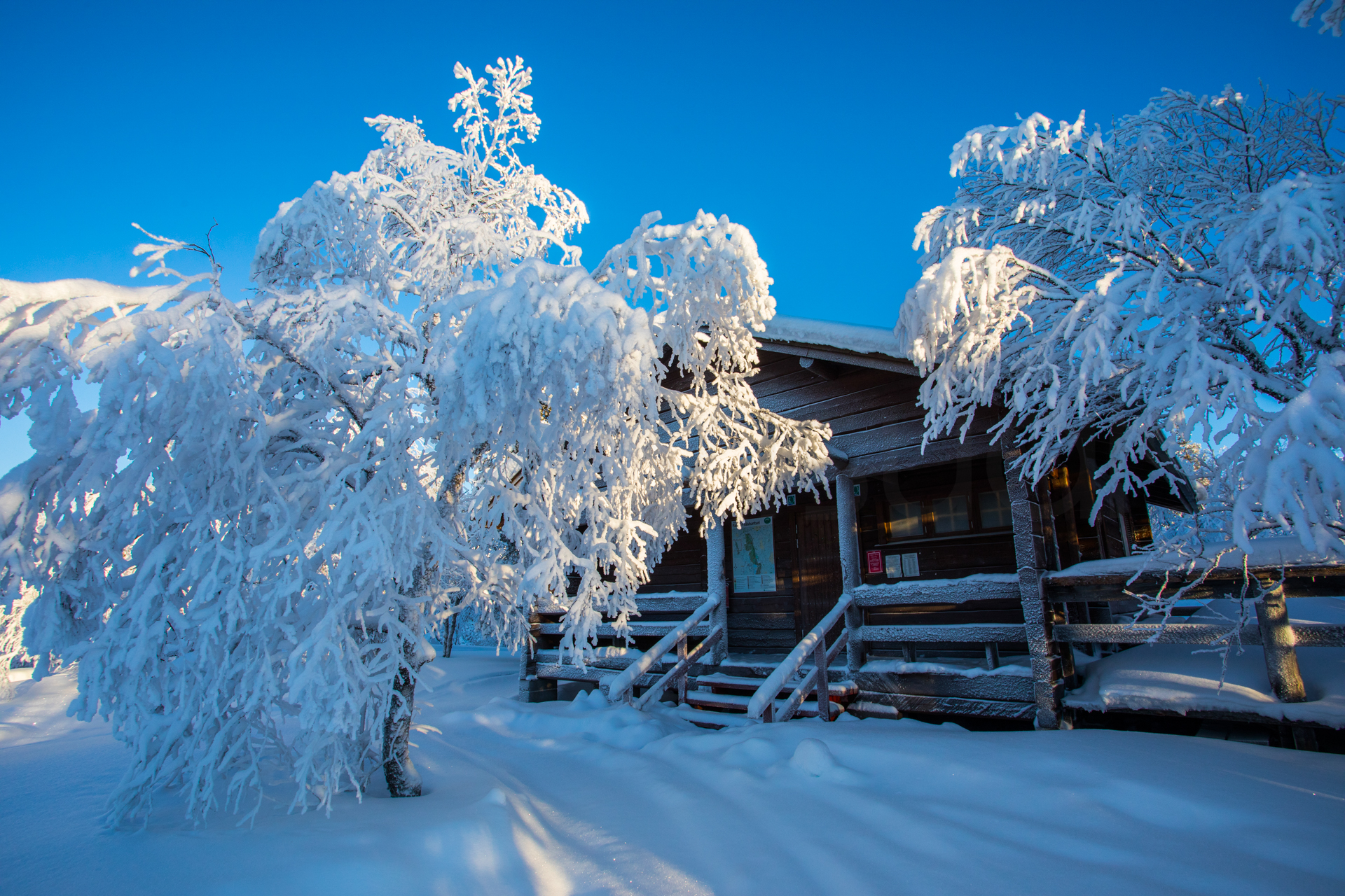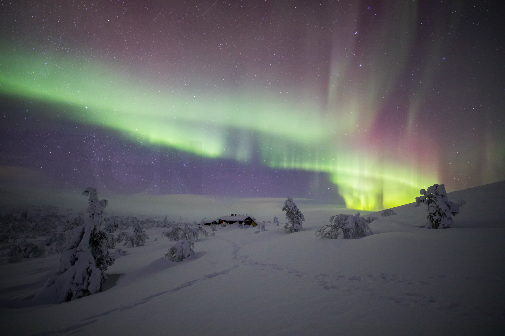 Esta etapa es preciosa con todo el paisaje nevado y con el día soleado. Llego a la cabaña de Pyhakero y paso una fría noche. Dejo la cámara afuera para hacer un timelapse nocturno esperando auroras boreales, pero las baterías de segunda marca me fallan (un peso que me podría haber ahorrado). Mira el equipo fotográfico que uso a día de hoy.
