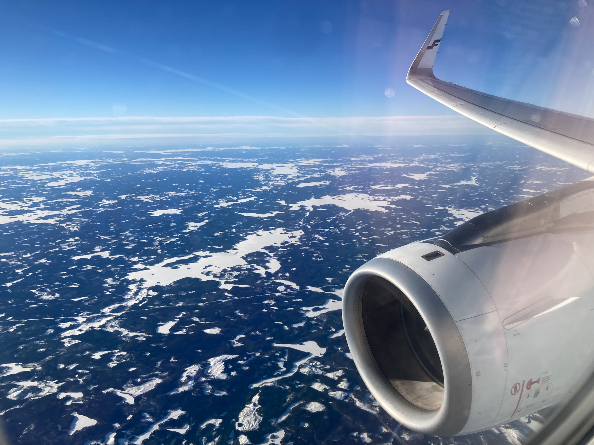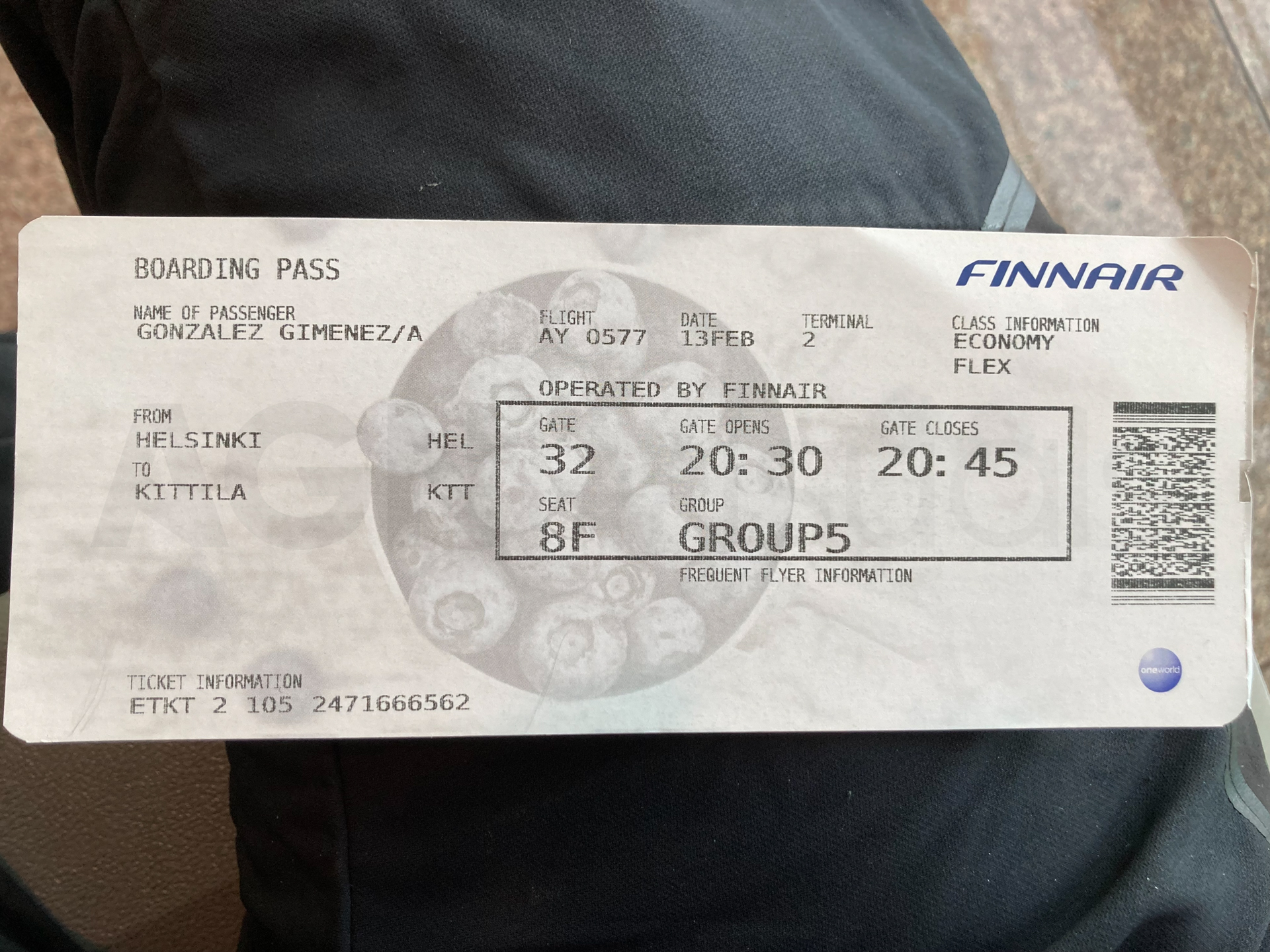 Consigo arrancar y voy directo al aeropuerto de Barcelona. Con tanto peso en el equipaje y habiendo dormido poco, el día se hace muy largo. En el vuelo de Helsinki a Kittilä, logro ver la aurora boreal en el horizonte desde el avión. No pude tomar fotos, pero fue como una bienvenida al Ártico.