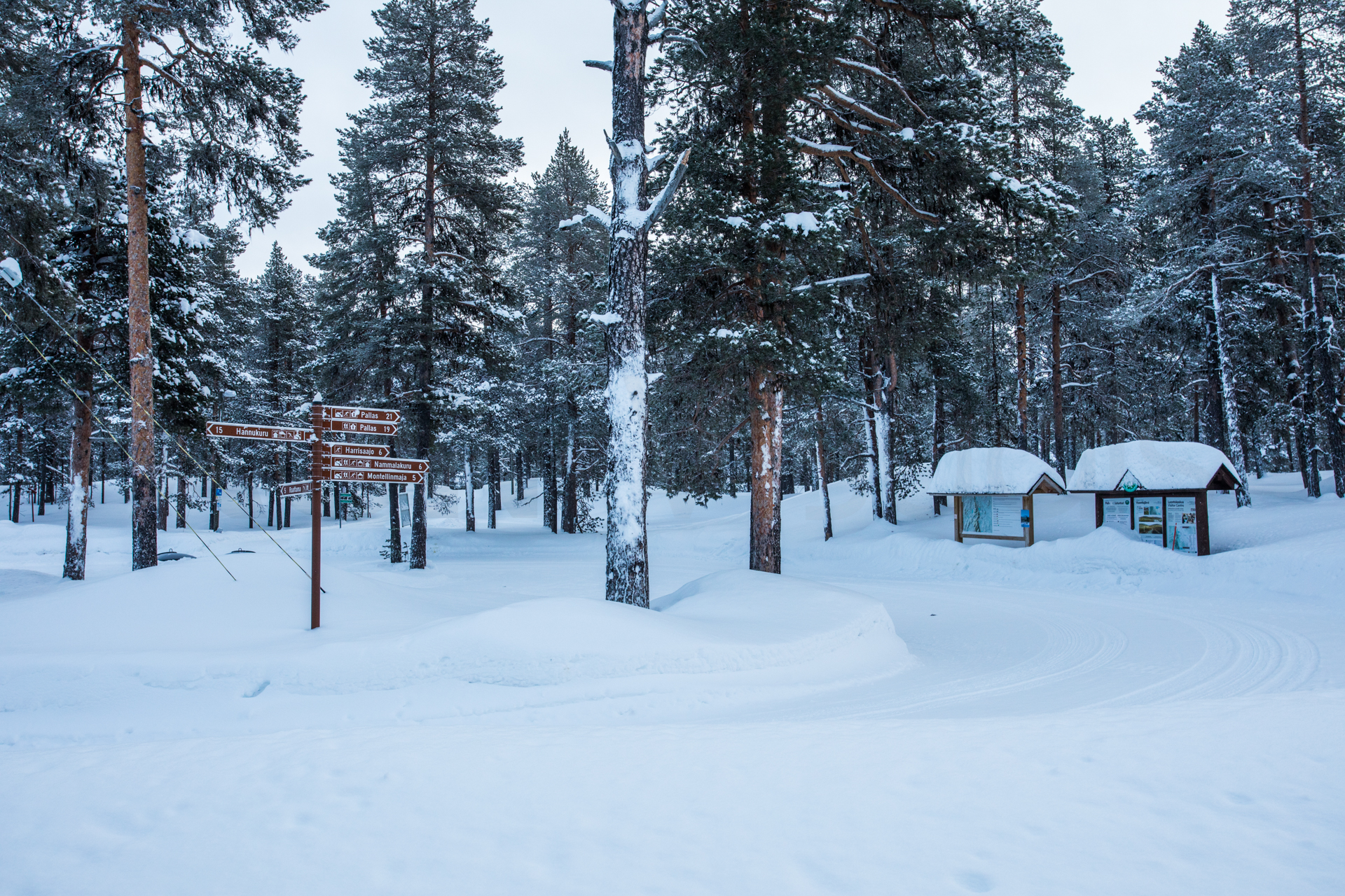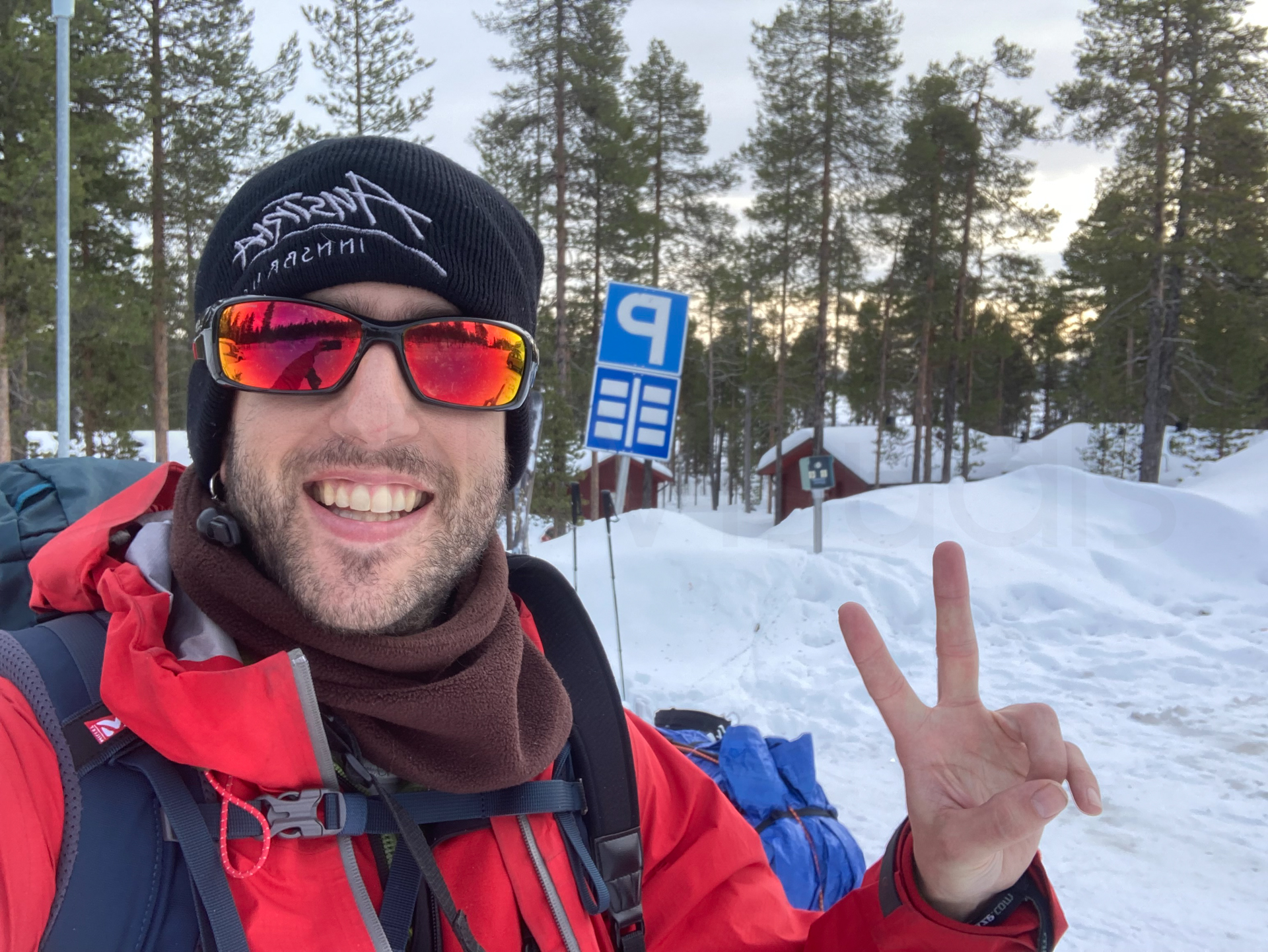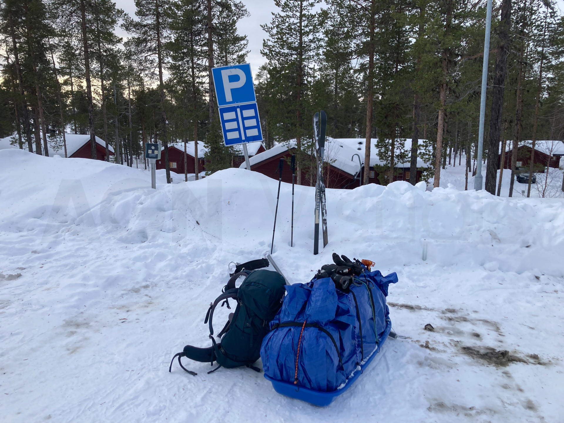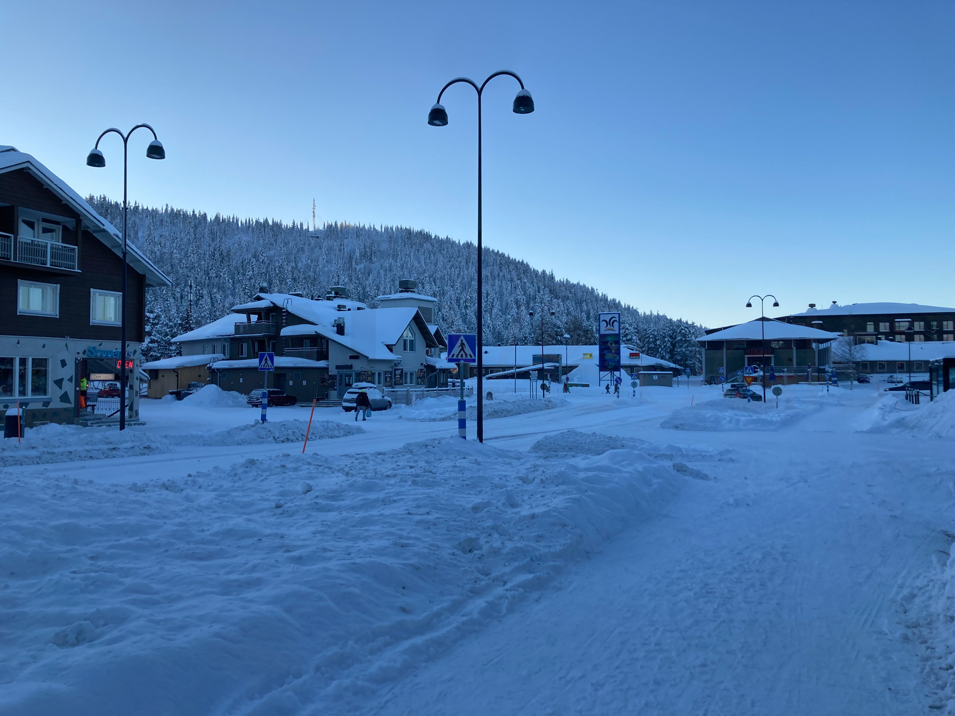 Llego a Kittilä (norte de Finlandia) en medio de una nevada, y al salir del aeropuerto pensaba que me encontraría con muchos controles por el Covid-19. Mi sorpresa fue que, después de recoger las maletas, salí de la zona de recogida de equipaje y me encontré con un pasillo de taxistas sin mascarilla. Me sorprendió después de leer las condiciones tan estrictas para entrar al país. Paso la noche en un apartamento en Levi para poder hacer la compra de comida y de combustible para el hornillo de la cocina al día siguiente.