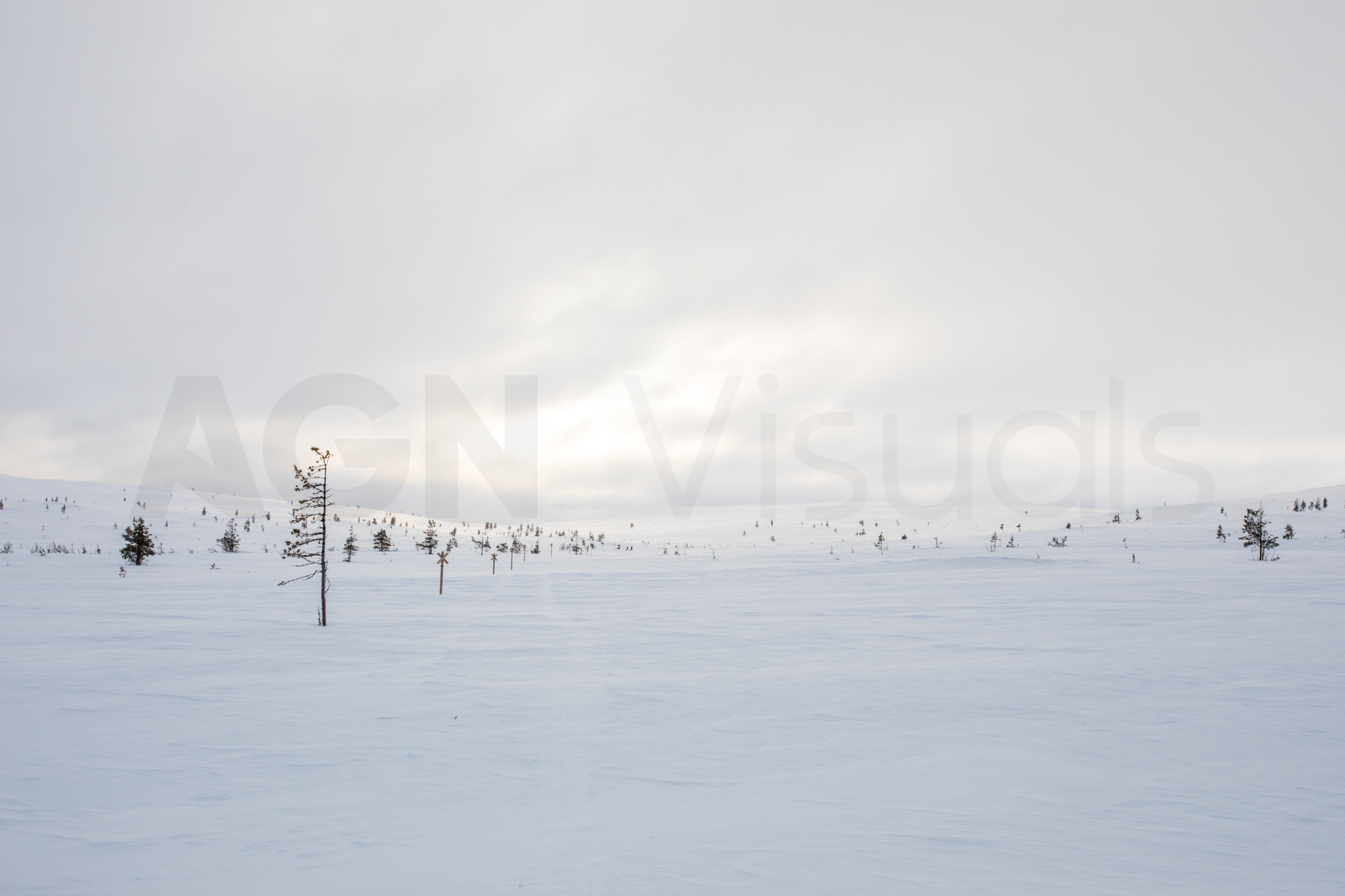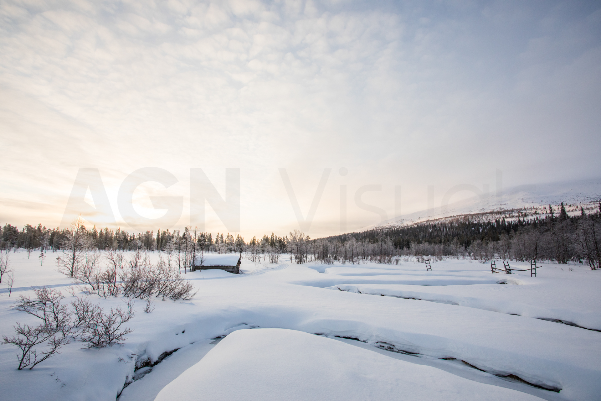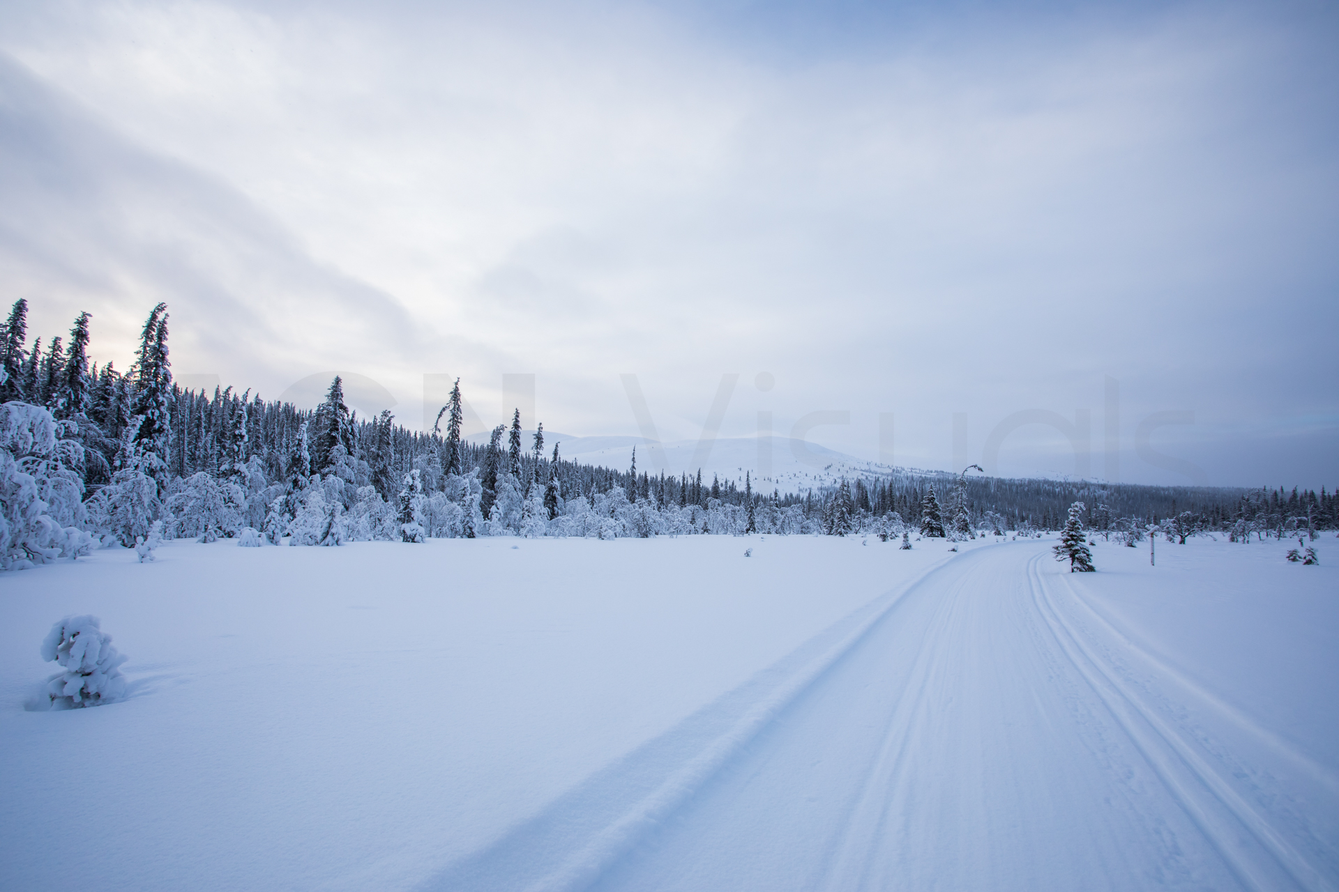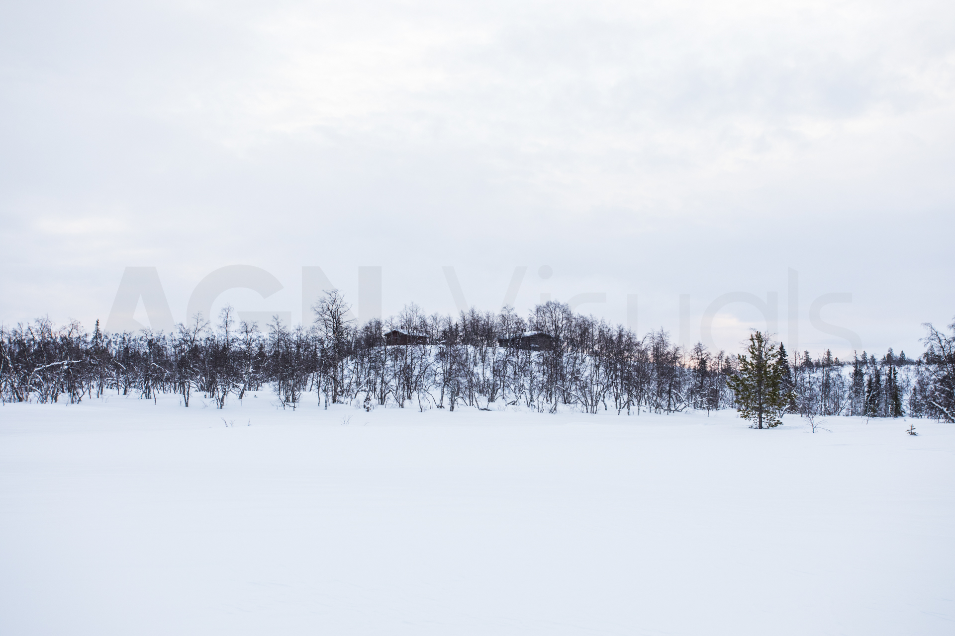Dejo la cabaña de Sioskuru y me dirijo hacia la cabaña de Pahakuru. Hoy el paisaje será precioso, nublado pero con unas vistas impresionantes de las montañas del parque. Observar las extensas llanuras de los bosques lapones es todo un espectáculo. Gracias al fuerte viento, la nieve está firme y avanzar se hace fácil, hasta llegar a Pahakuru.