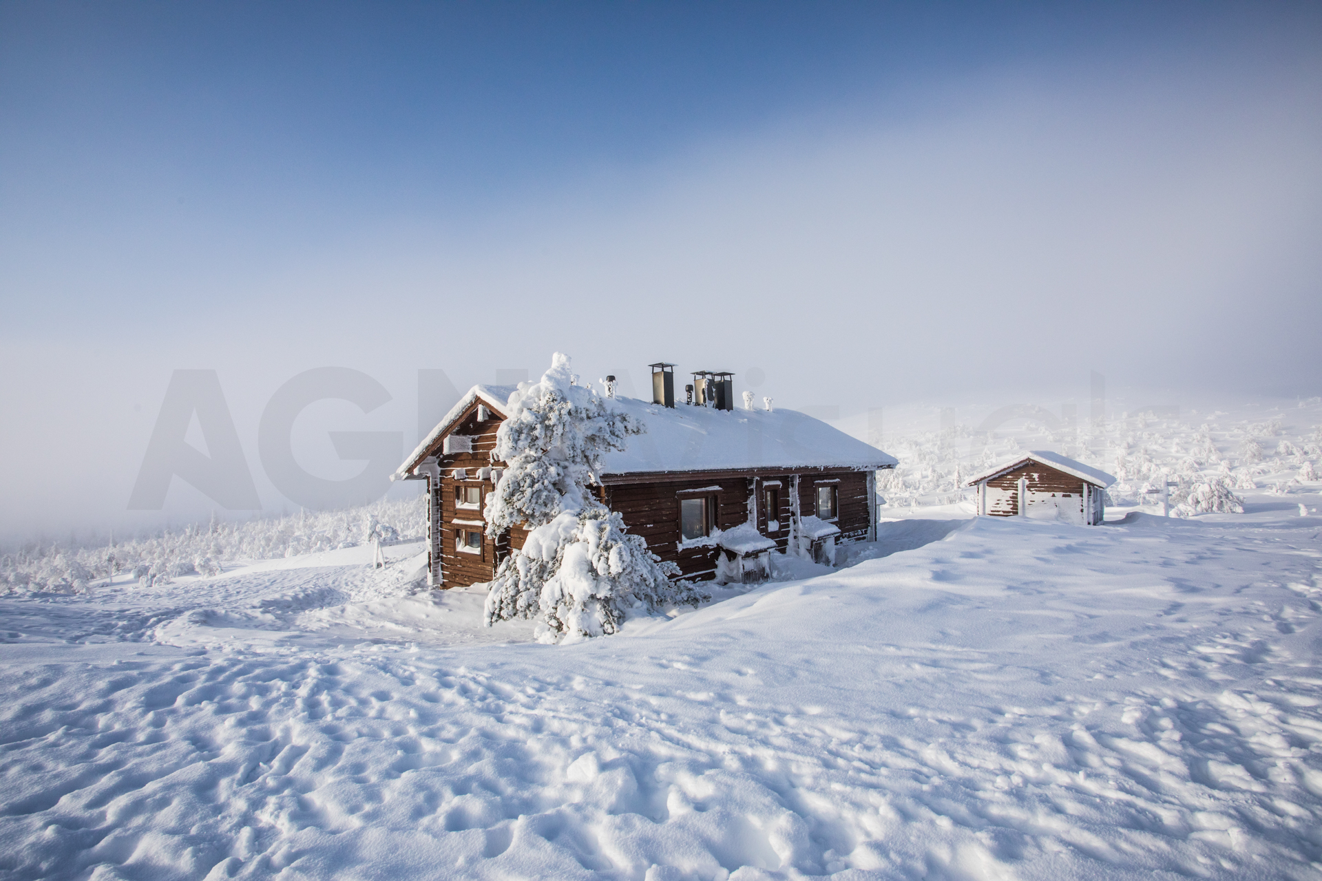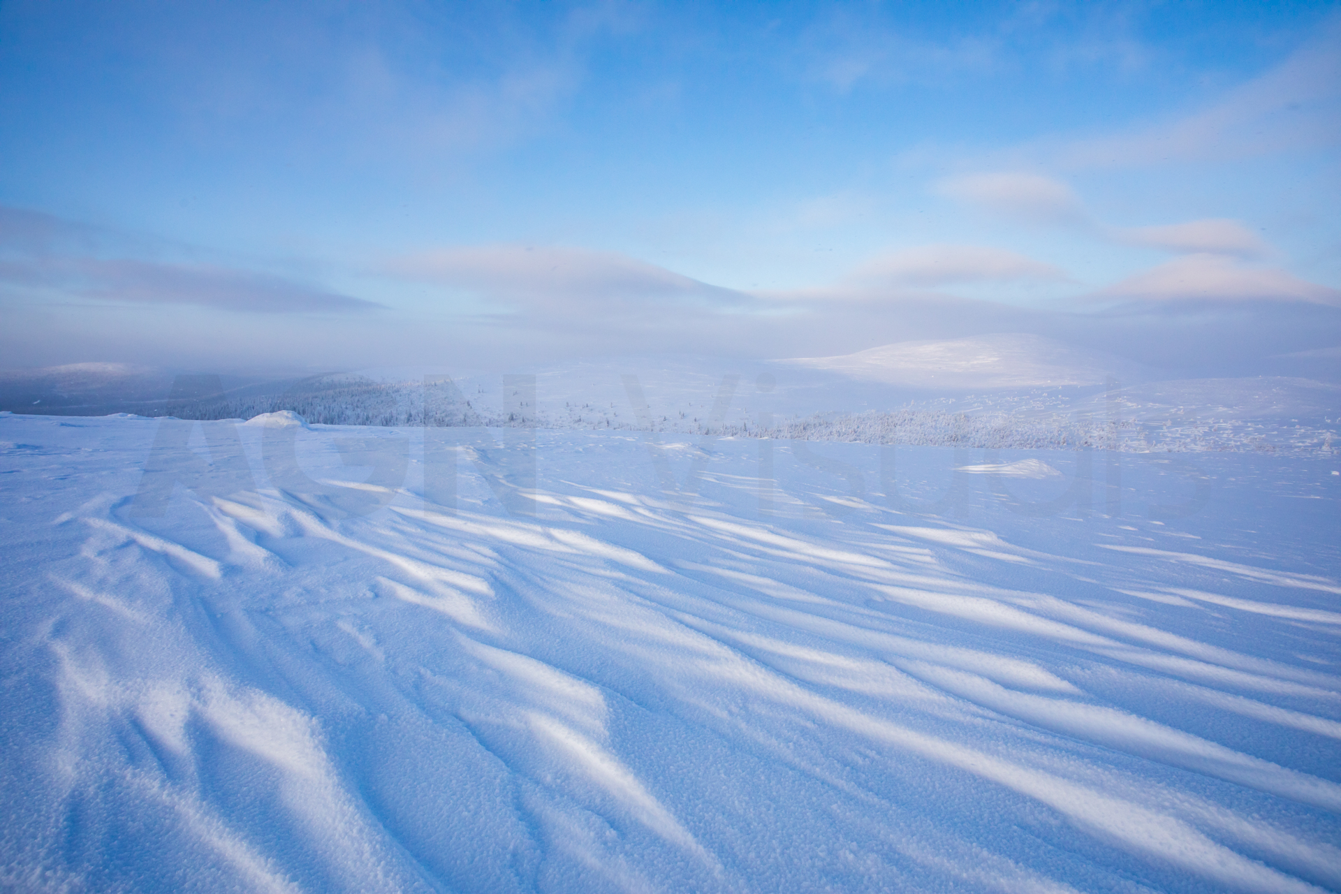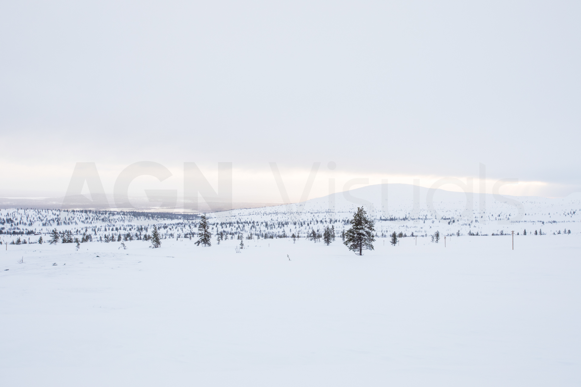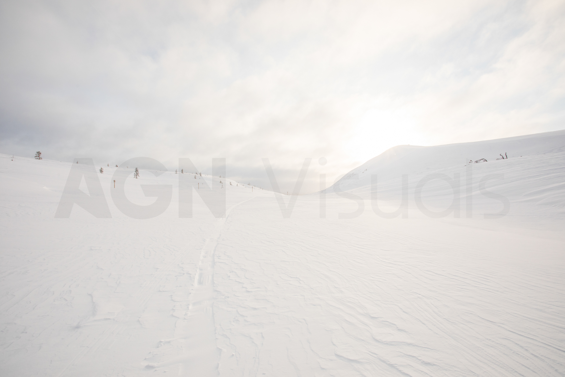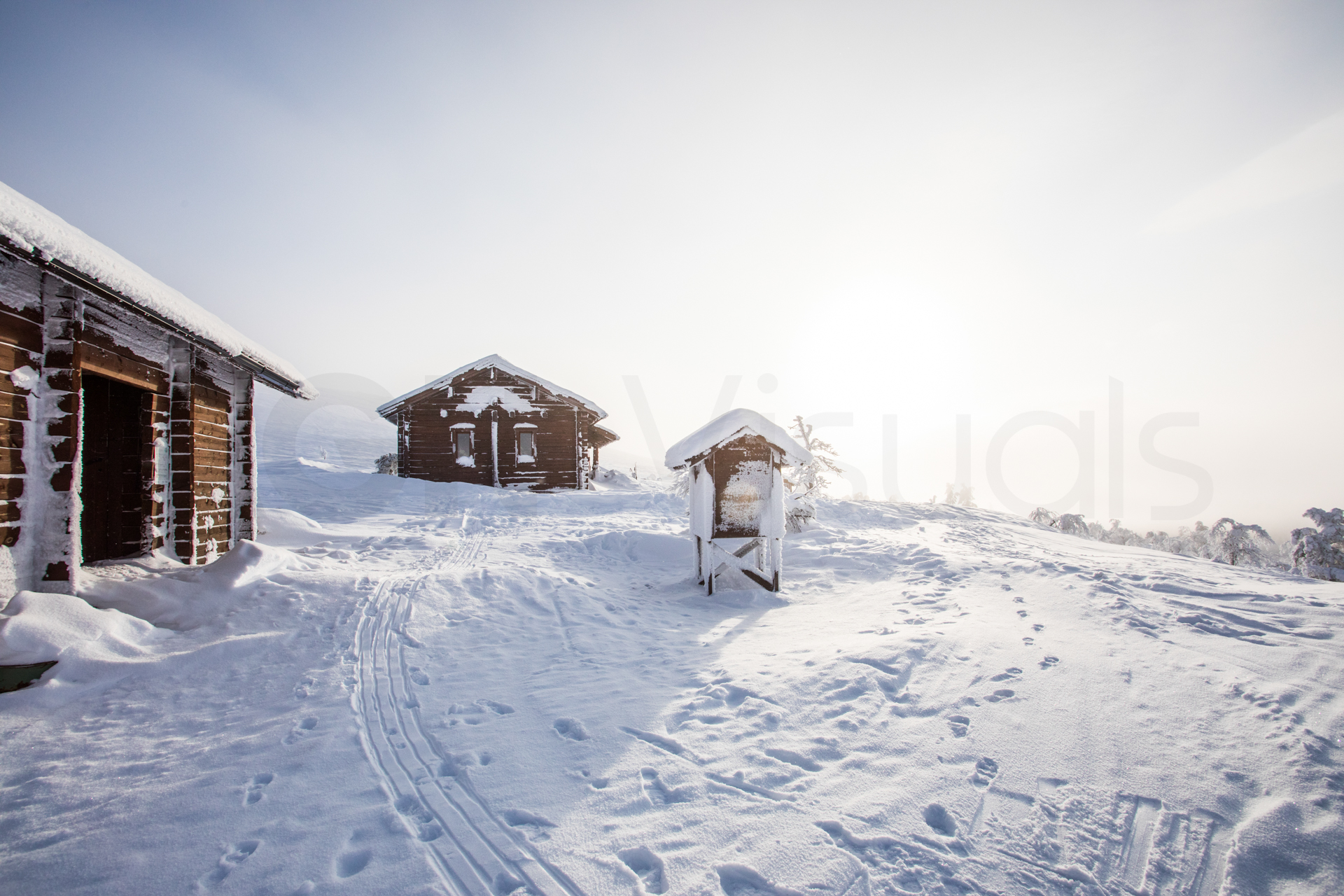 Dejo la cabaña de Sioskuru y me dirijo hacia la cabaña de Pahakuru. Hoy el paisaje será precioso, nublado pero con unas vistas impresionantes de las montañas del parque. Observar las extensas llanuras de los bosques lapones es todo un espectáculo. Gracias al fuerte viento, la nieve está firme y avanzar se hace fácil, hasta llegar a Pahakuru.