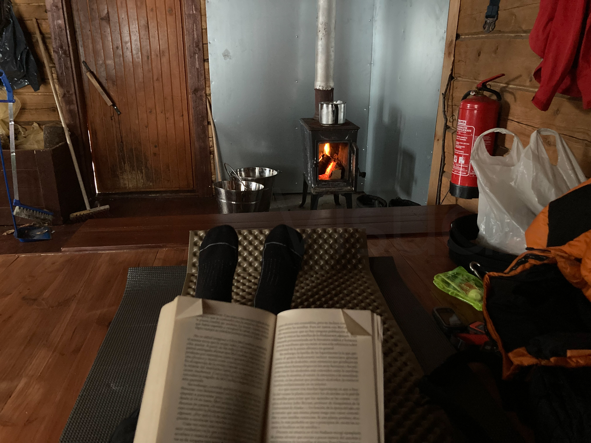En este refugio pasaré un par de días esperando que mejore la meteorología. Hago algún paseo por la zona y leo mucho. Me conviene recuperar fuerzas, además, el día anterior forcé el dedo gordo del pie, me duele bastante y necesita reposo.
