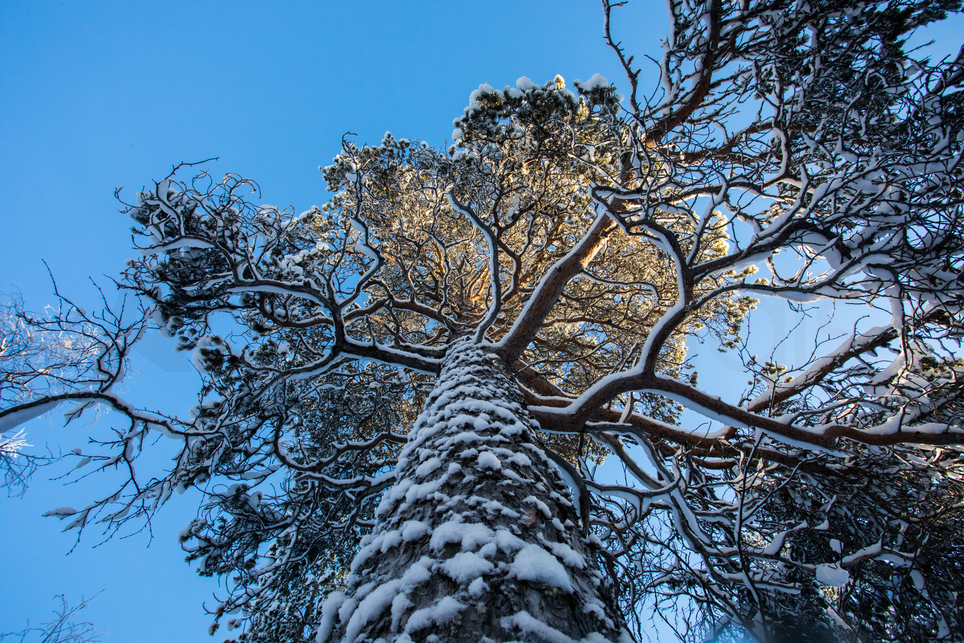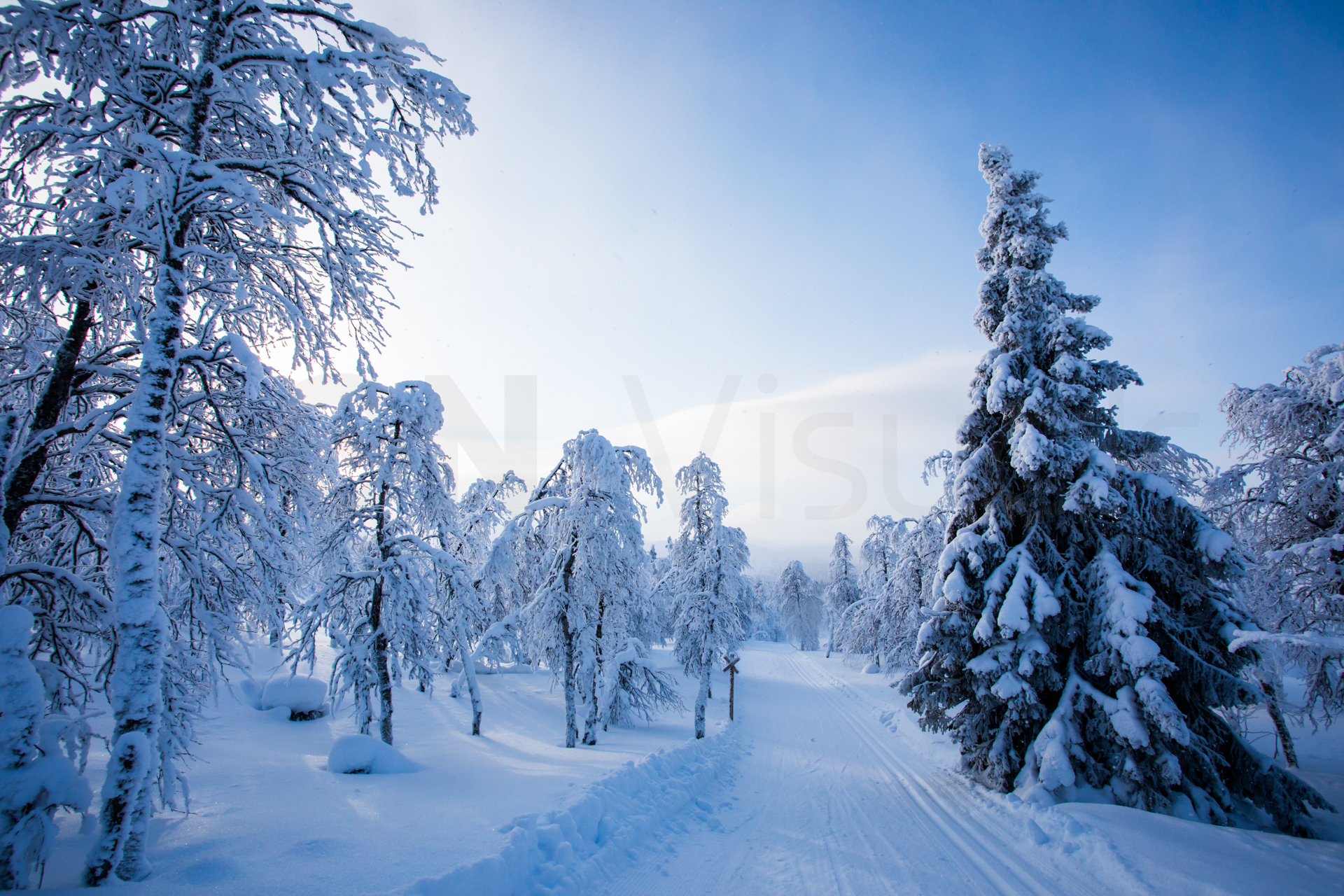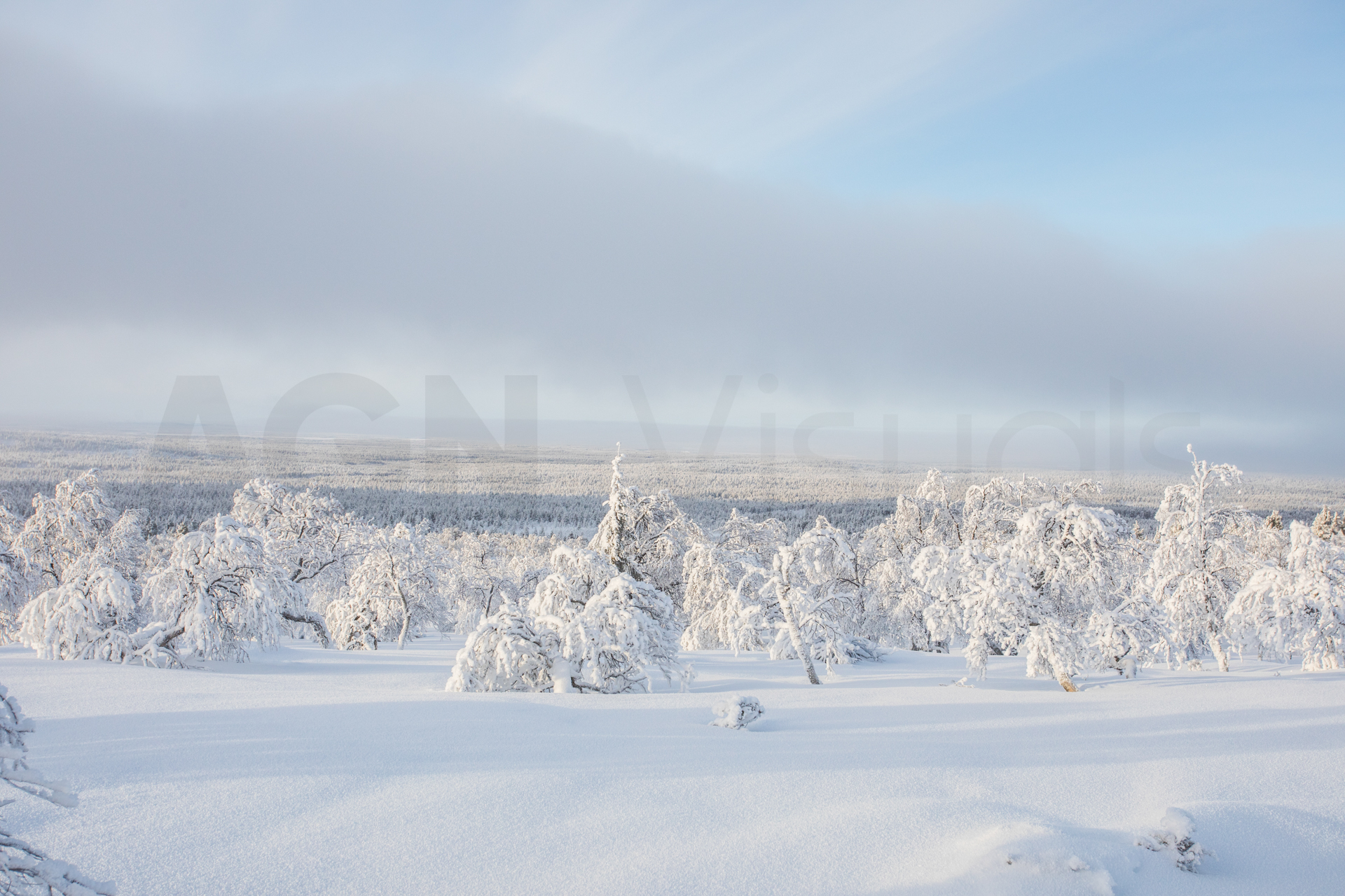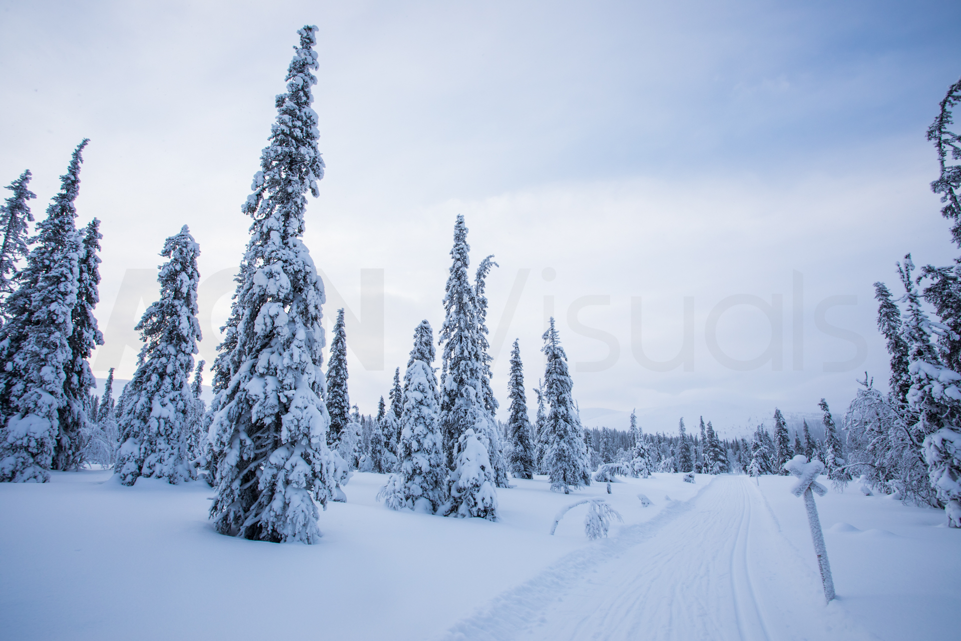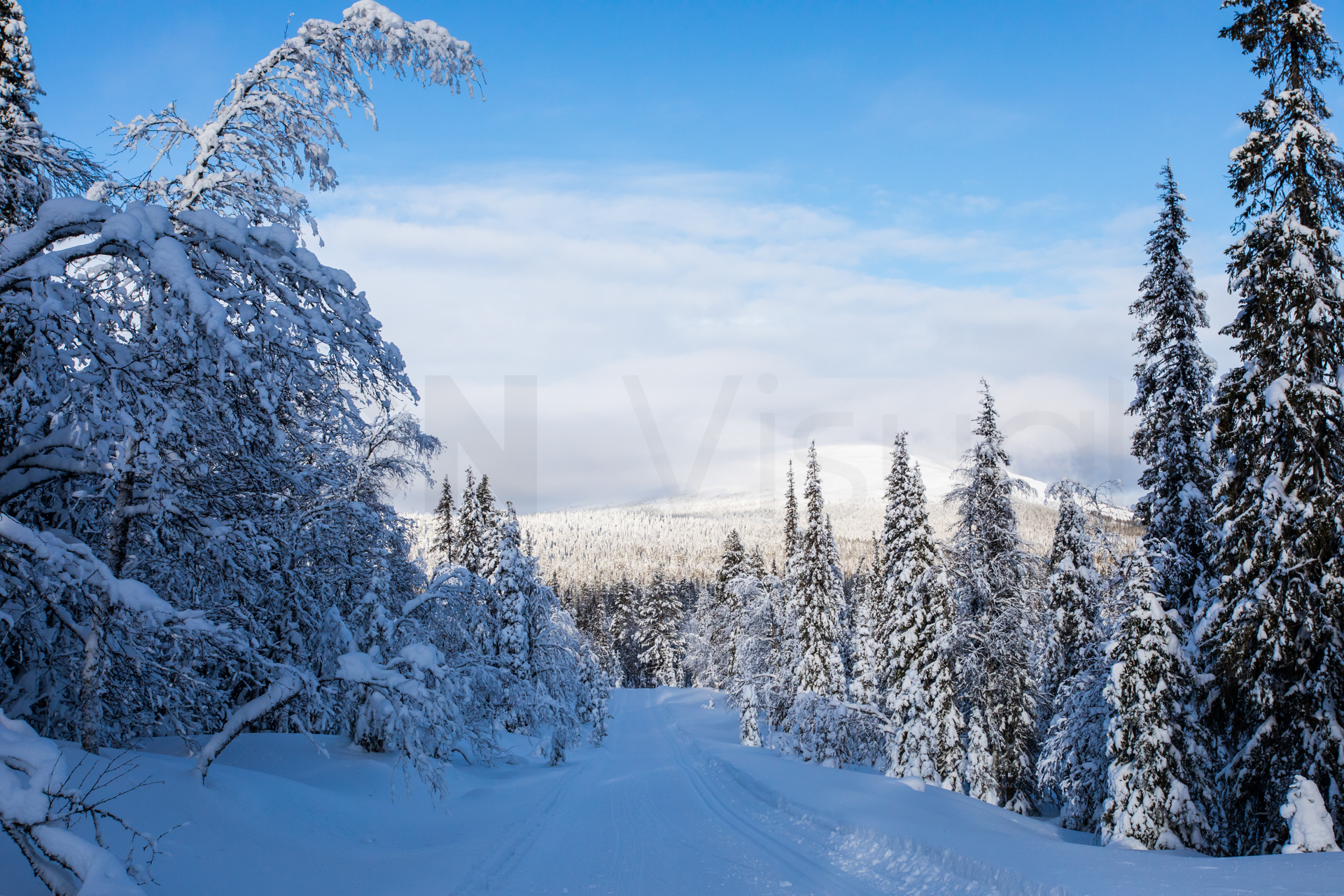 Salgo de Vuontispirtti y me dirijo hacia la cabaña de Nammalakuru. Hoy me espera un buen desnivel, pero con nieve pisada. Realizo todo el tramo sin los esquís y a pie. Con estas fuertes subidas, hubiera ido bien llevar pieles de foca, ya que las escamas de los esquís Cross Country no son suficientes. Este error acentuaría mucho más la lesión en el dedo gordo del pie derecho al forzar la posición de los esquís en la subida, la cual arrastraría durante meses después. Aunque la subida es dura, el paisaje es precioso, con todo el camino rodeado de frondosos y altos árboles cubiertos de nieve. Al llegar arriba, me esperan unas vistas espectaculares.