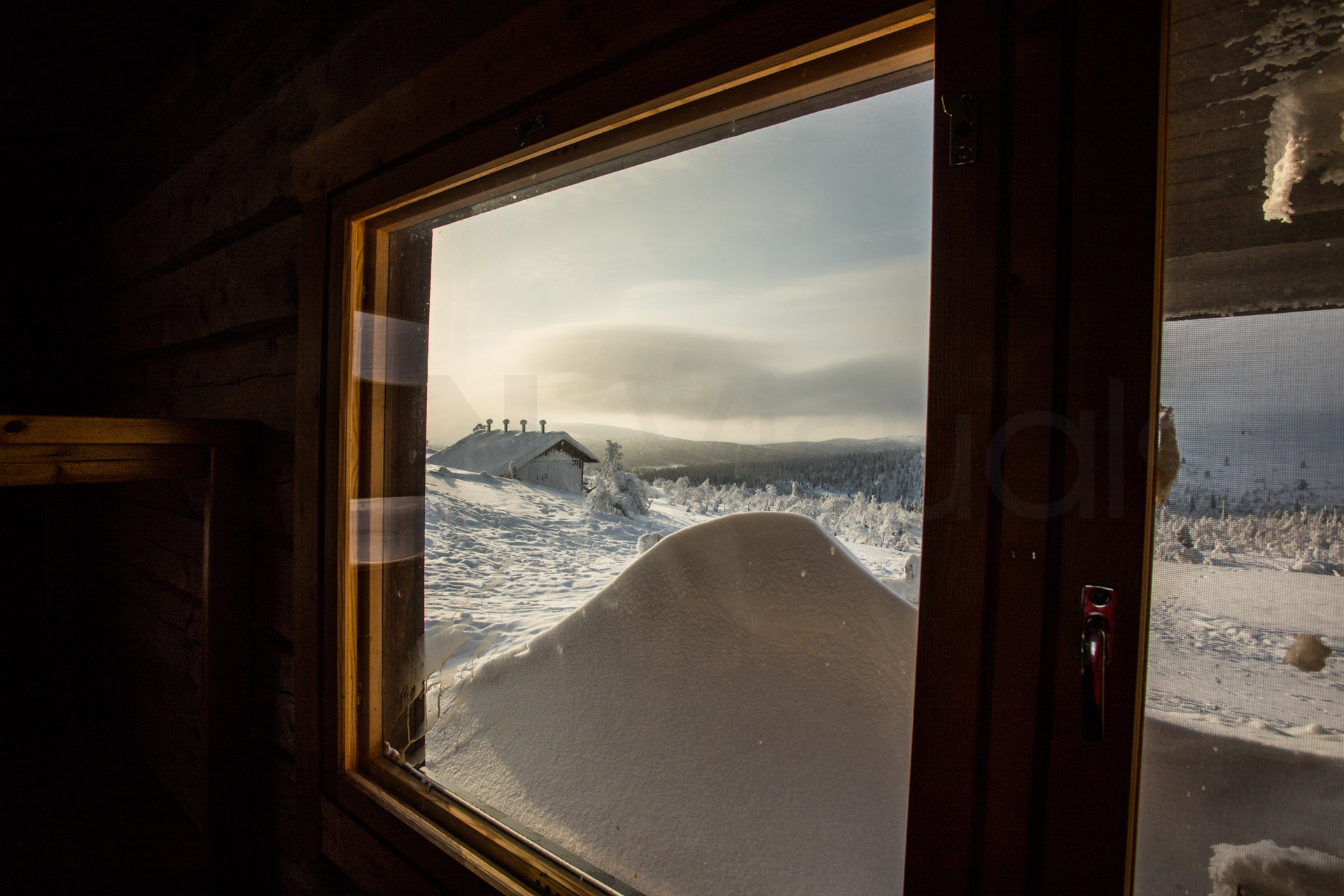 Al día siguiente, un señor finlandés que había pasado la noche con sus hijos en la cabaña me dijo que esa noche habíamos llegado a -38 °C. ¡Qué bien se estaba dentro la cabaña con el fuego!