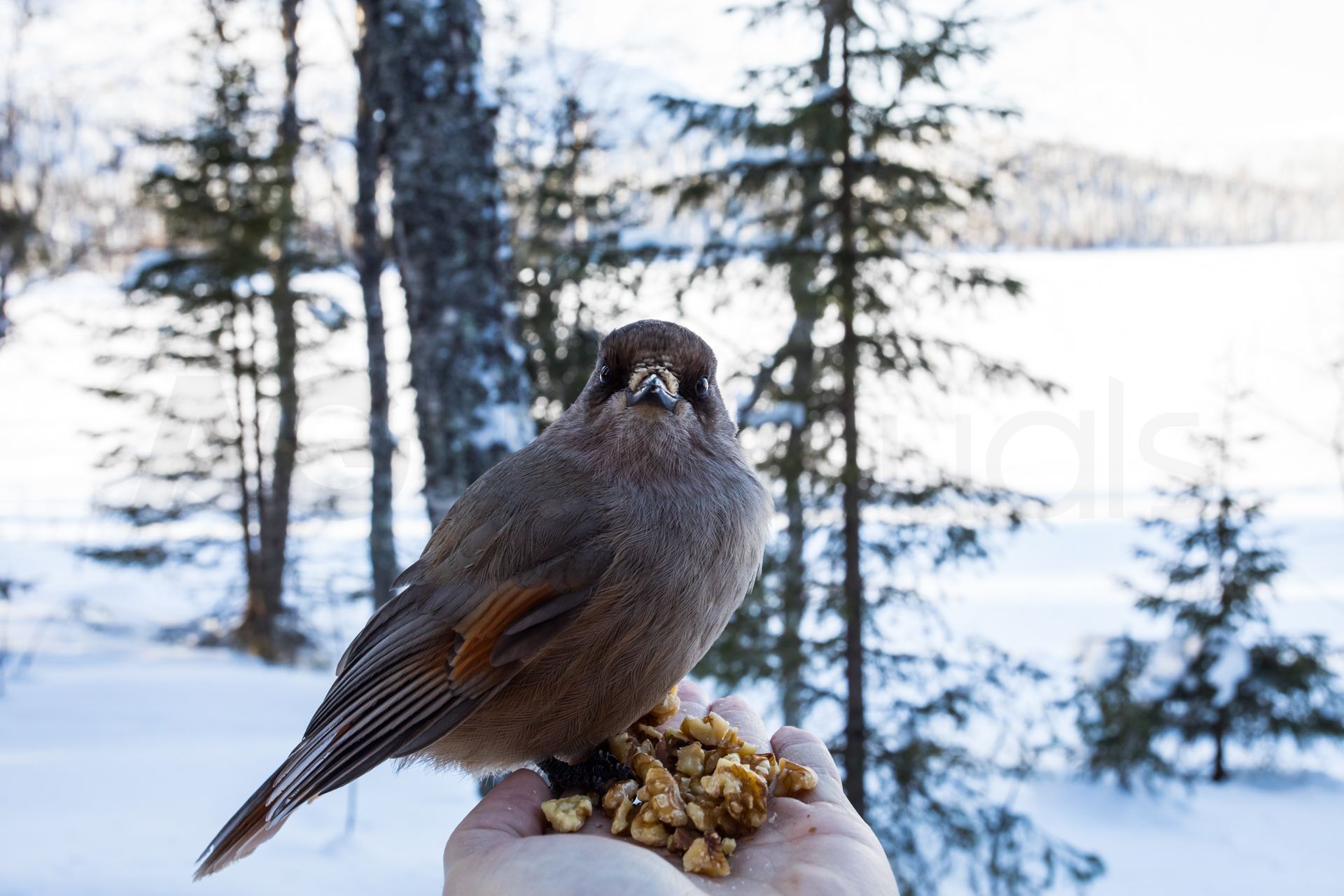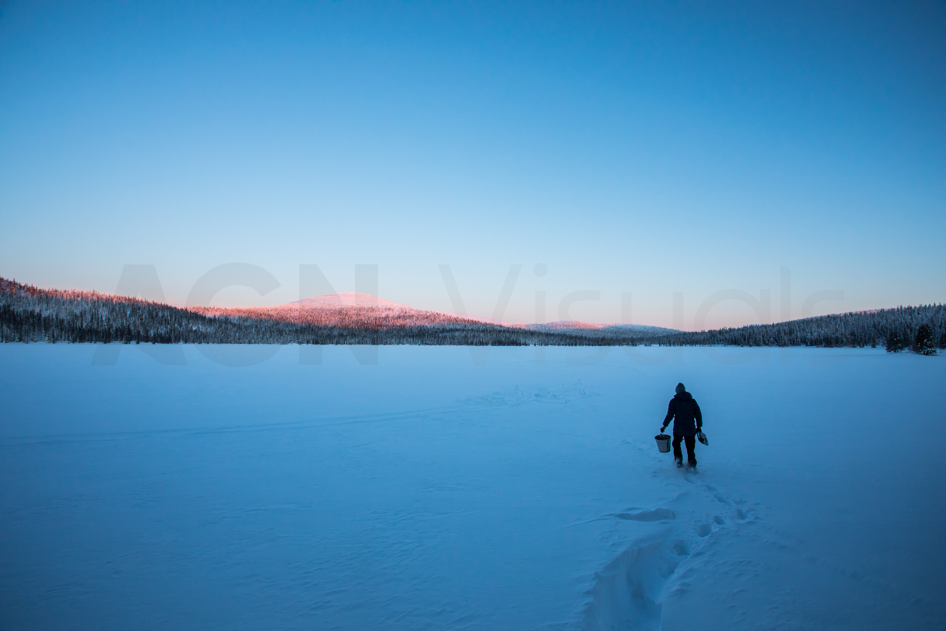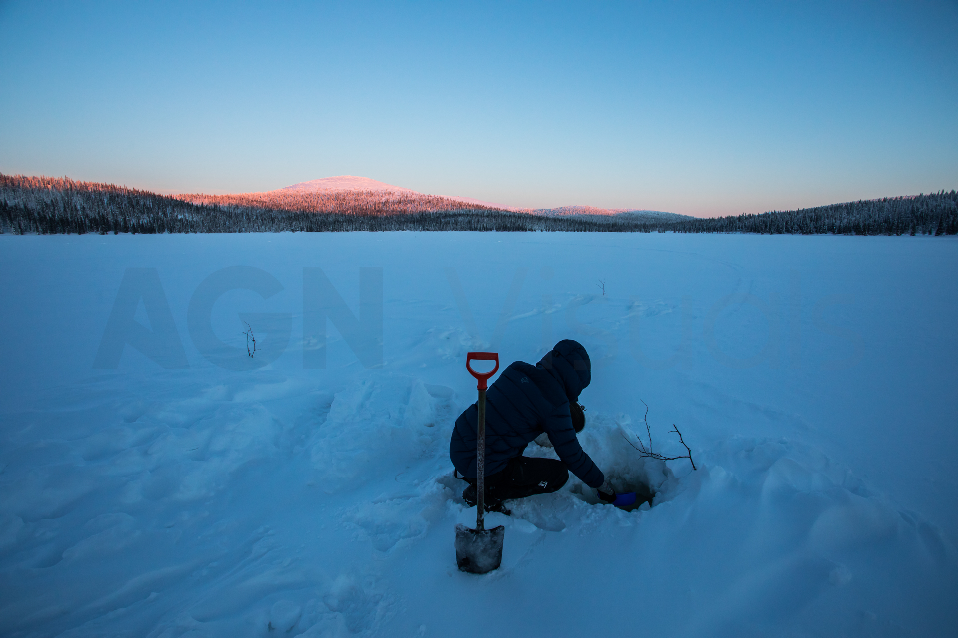 Hoy pasaré el día alrededor de la cabaña. El chico francés me enseña un agujero en el hielo que hicieron unos pescadores y aquí cogeremos agua para hervir. Esto nos hará ahorrar en combustible del hornillo, evitando descongelar nieve. Hago algunas fotos del paisaje y de algunos pájaros.