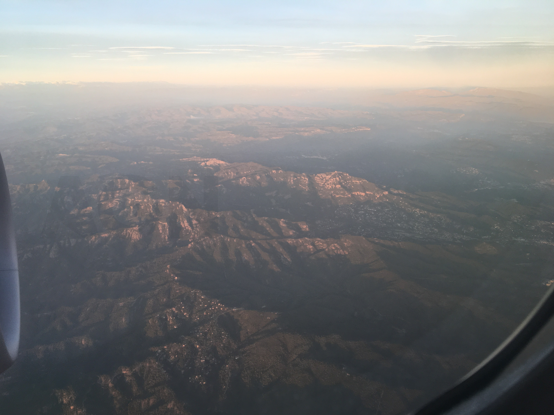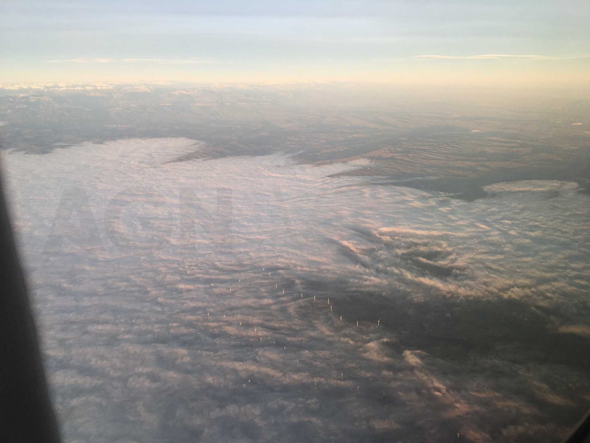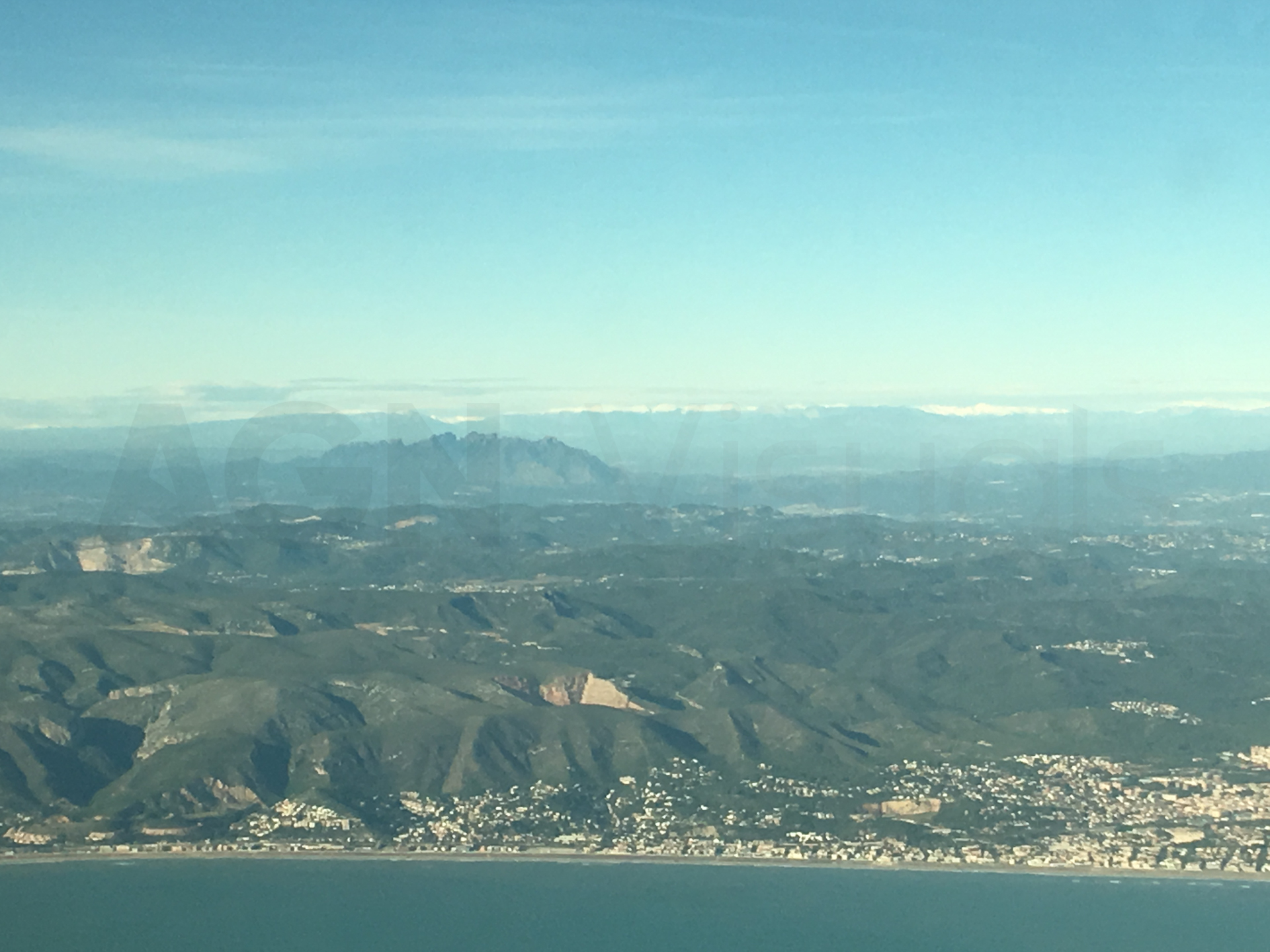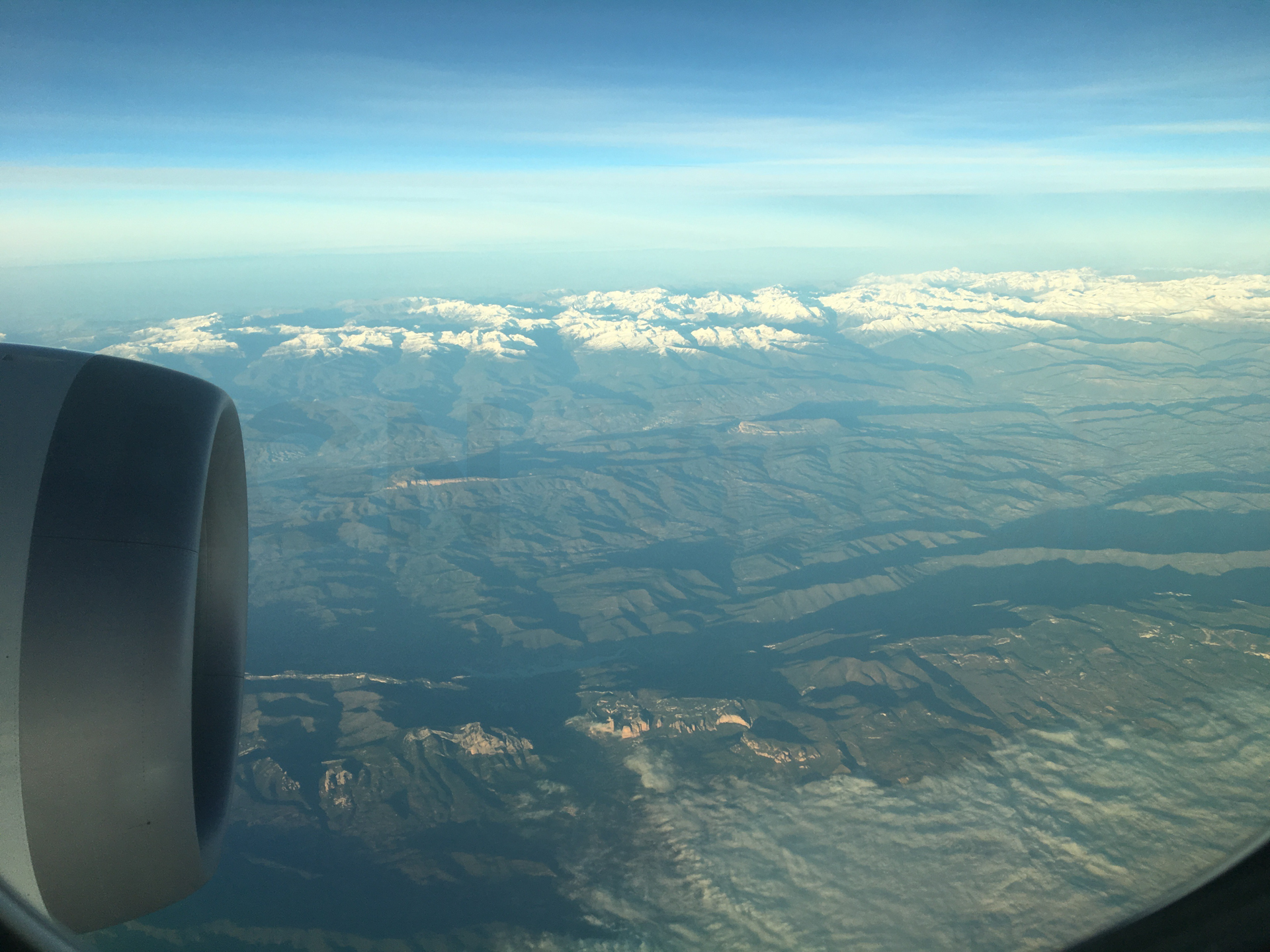 Por fin estamos sobrevolando la península Ibérica. Desde el aire, vemos las nieblas del Valle del Ebro, la Sierra del Montsec y el Pirineo de fondo.