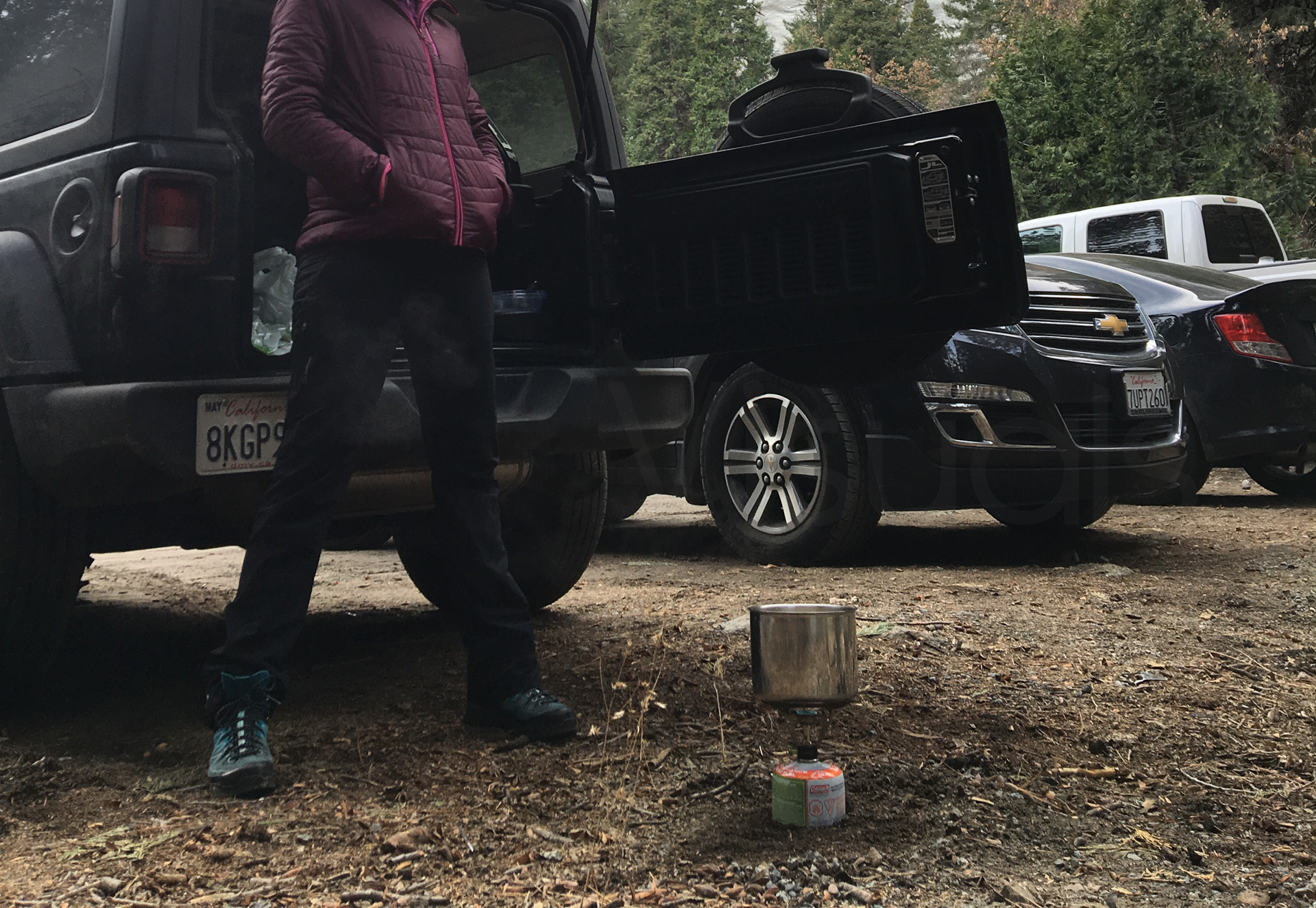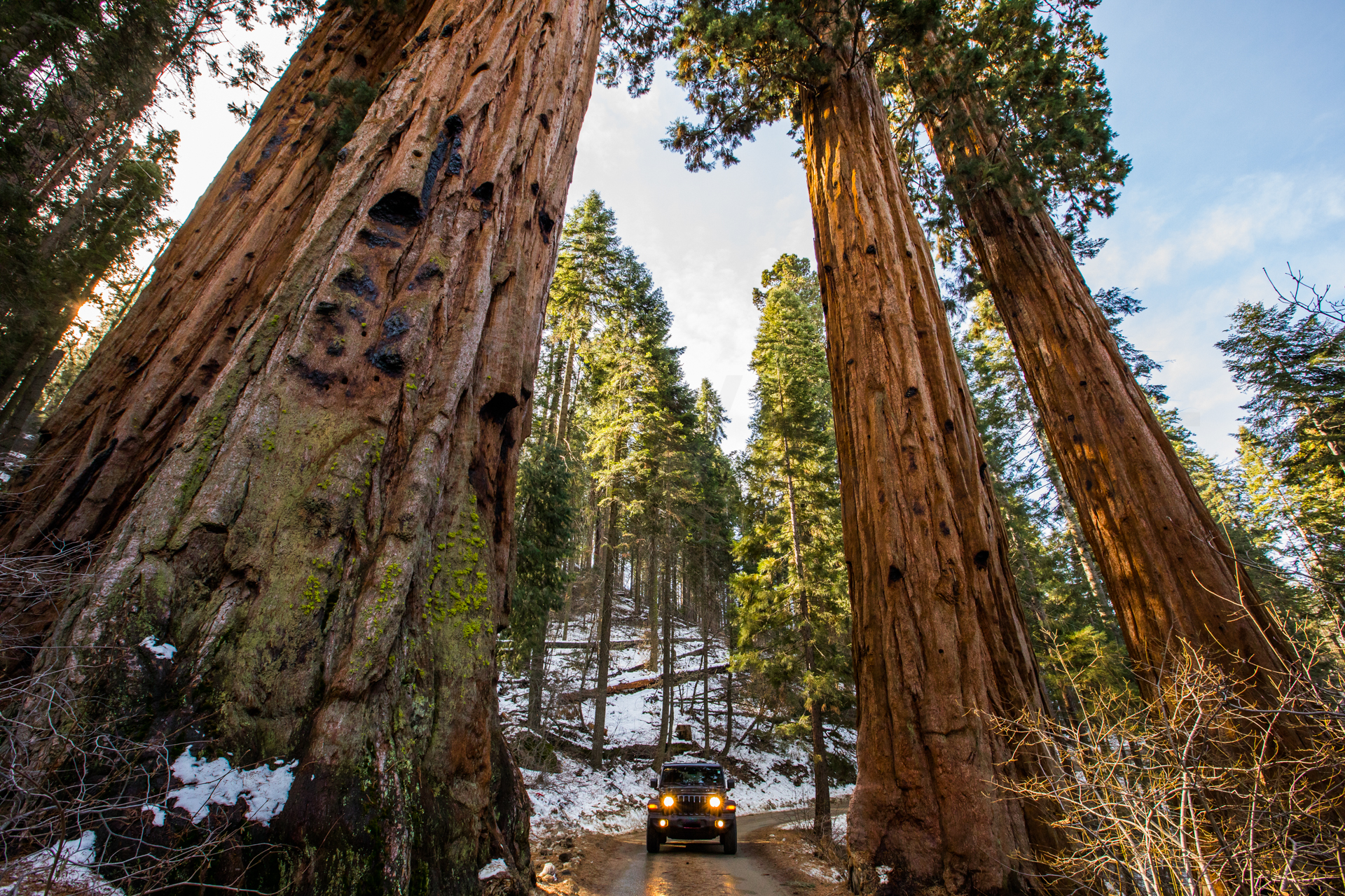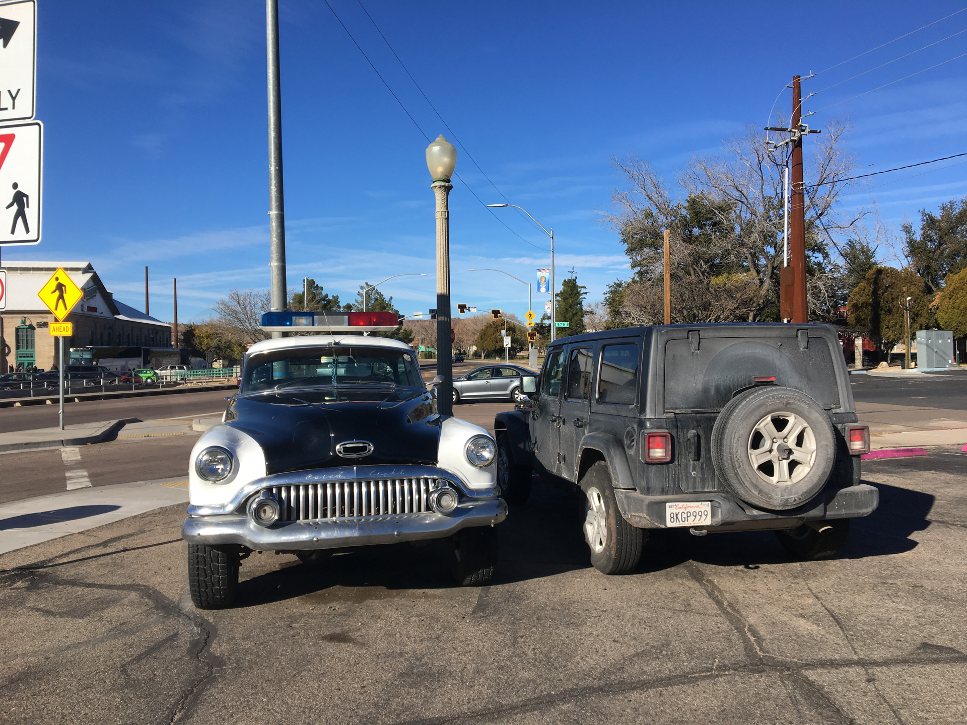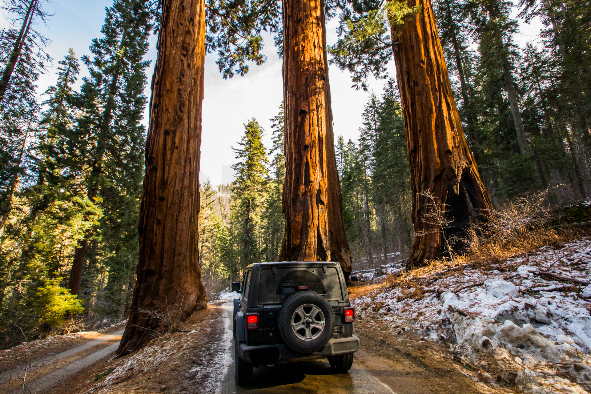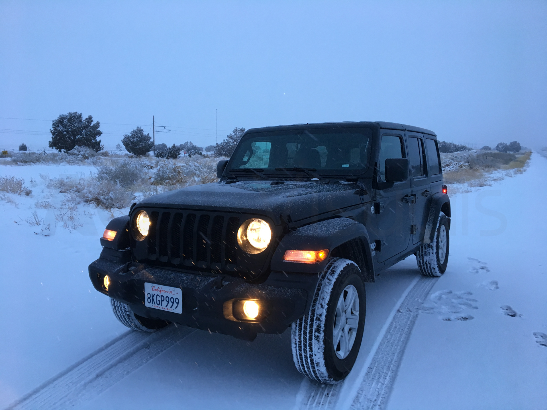 Toca ir a buscar el coche de alquiler. En el aeropuerto de Los Ángeles, un shuttle bus te lleva con tu compañía de alquiler de coches. Salimos del aeropuerto a la zona de los buses, vemos un shuttle bus y es el nuestro. Corremos hacia él y lo paramos con las maletas en medio. El conductor para el bus y se ríe de nosotros. Estamos tan cansados que no queremos esperar al siguiente. Nos pide la reserva del alquiler y nos lleva hacia la oficina de alquiler de coches. Por fin llegamos y aquí también hay cola. Nos toca por fin. Tenemos reservado un coche SUV, en la reserva pone 4×4. En principio nos daban un coche SUV que no es tracción a las cuatro ruedas así que insisto que sí, que mi reserva es 4×4. Finalmente nos dan un Jeep Wrangler 4×4 y con neumáticos de invierno. Este coche nos iría perfecto para nuestro viaje con muchas carreteras nevadas y heladas. Hice un fallo común para los que estamos acostumbrados al cambio manual, buscar el pedal de embrague. Nada más salir del parking de alquiler, al frenar, voy a pisar el pedal de embrague y piso sin querer el freno. Un buen frenazo nada más salir. Para los que no estéis acostumbrados a conducir un coche con cambio automático, tened en cuenta que estos coches solo tienen dos pedales, el freno y el acelerador. El pie izquierdo esconderlo y no se os ocurra pisar el freno con el pie izquierdo, frenaréis de golpe.