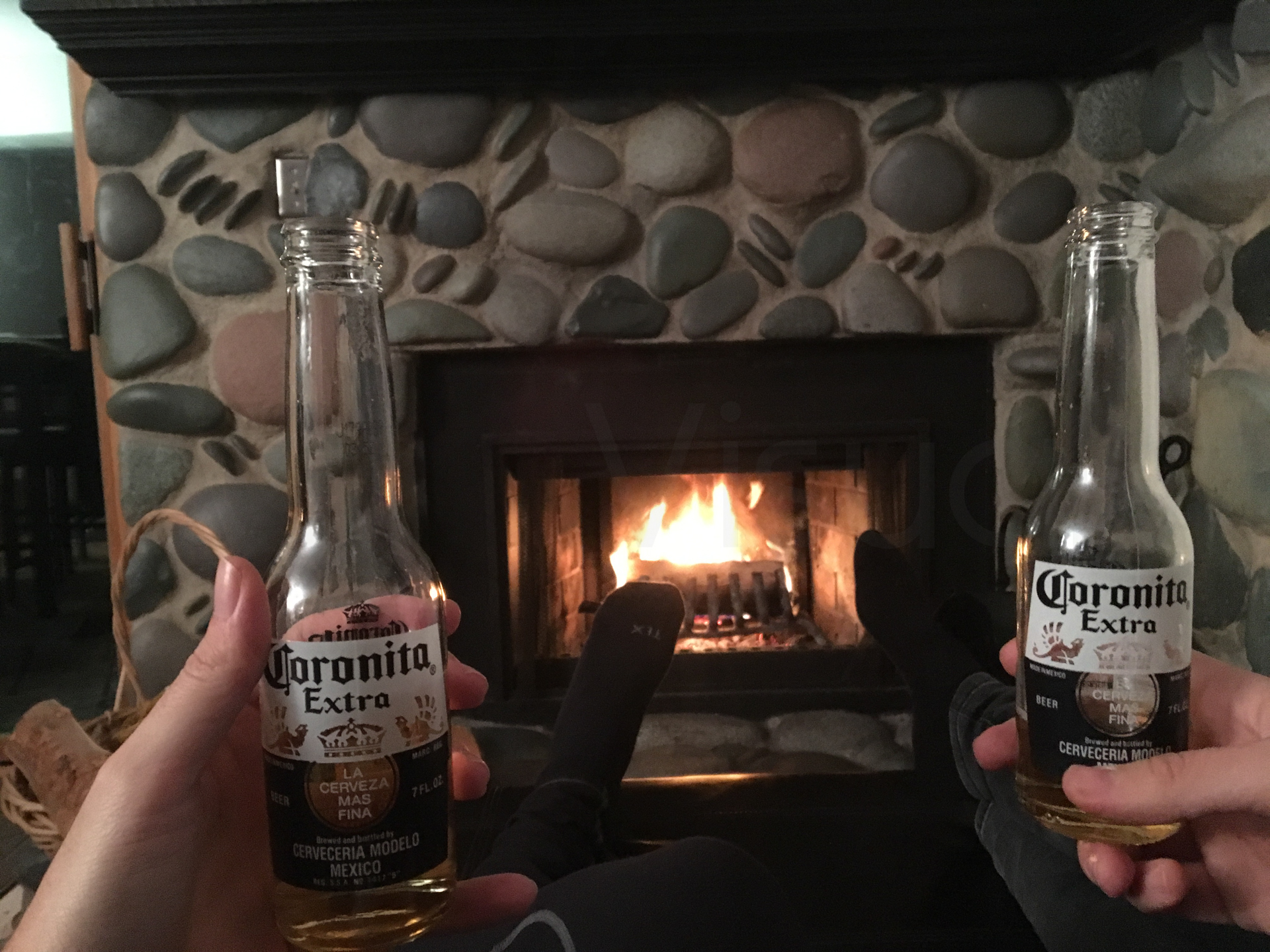¡Por fin un poco de descanso! Unas cervezas junto al fuego, afuera nevando y recordando lo de estos días atrás.