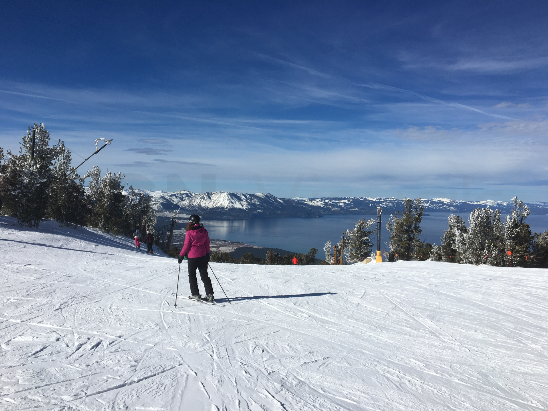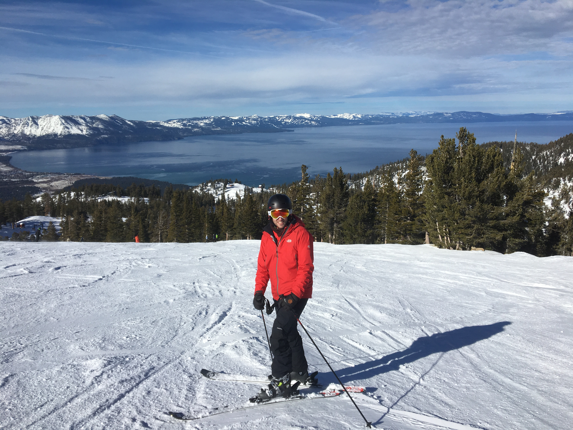 Así que, una vez con el apartamento en las pistas, alquilamos los esquís, compramos los forfaits y ¡a esquiar! La nieve estaba increíble, había nevado la noche anterior y estaba fantástica. Además, hacía un día soleado que permitía ver las fantásticas vistas del Lago Tahoe y las Montañas Rocosas. Fue un día de esquí fantástico y con la mejor compañía.