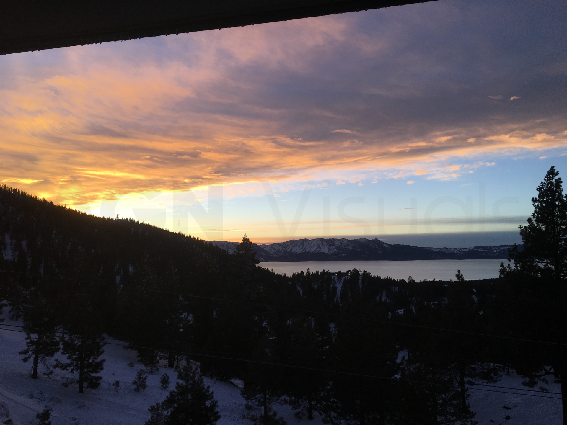 Hoy no tenemos tantas horas de carretera. Nos dirigimos a un apartamento a pie de pistas de esquí con vistas del Lago Tahoe y las Montañas Rocosas. Llegamos con una leve nevada, nos instalamos en el apartamento, encendemos fuego y nos relajamos.